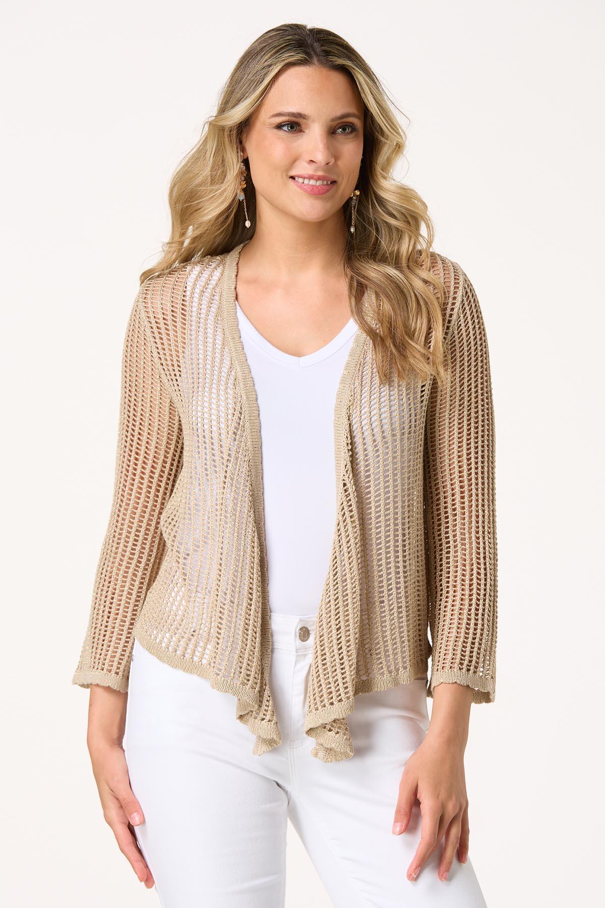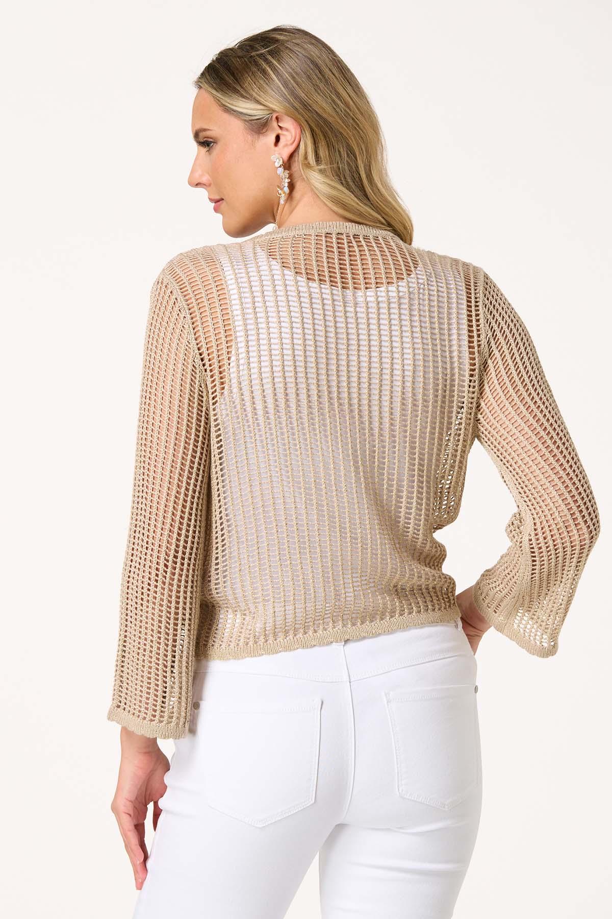 Meet the one you’ll definitely want over. With a shimmery-lurex thread, natural hue, relaxed fit and cool-open stitch design, you’ll love having this around to warm up those sleeveless styles and add a hint of shine.