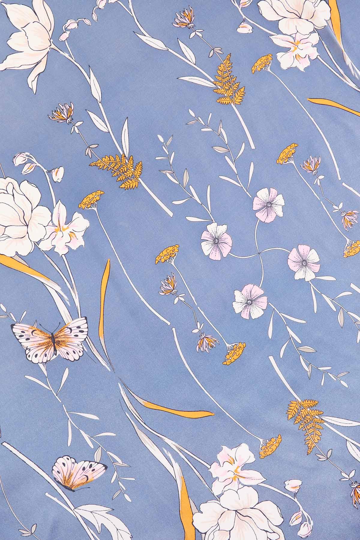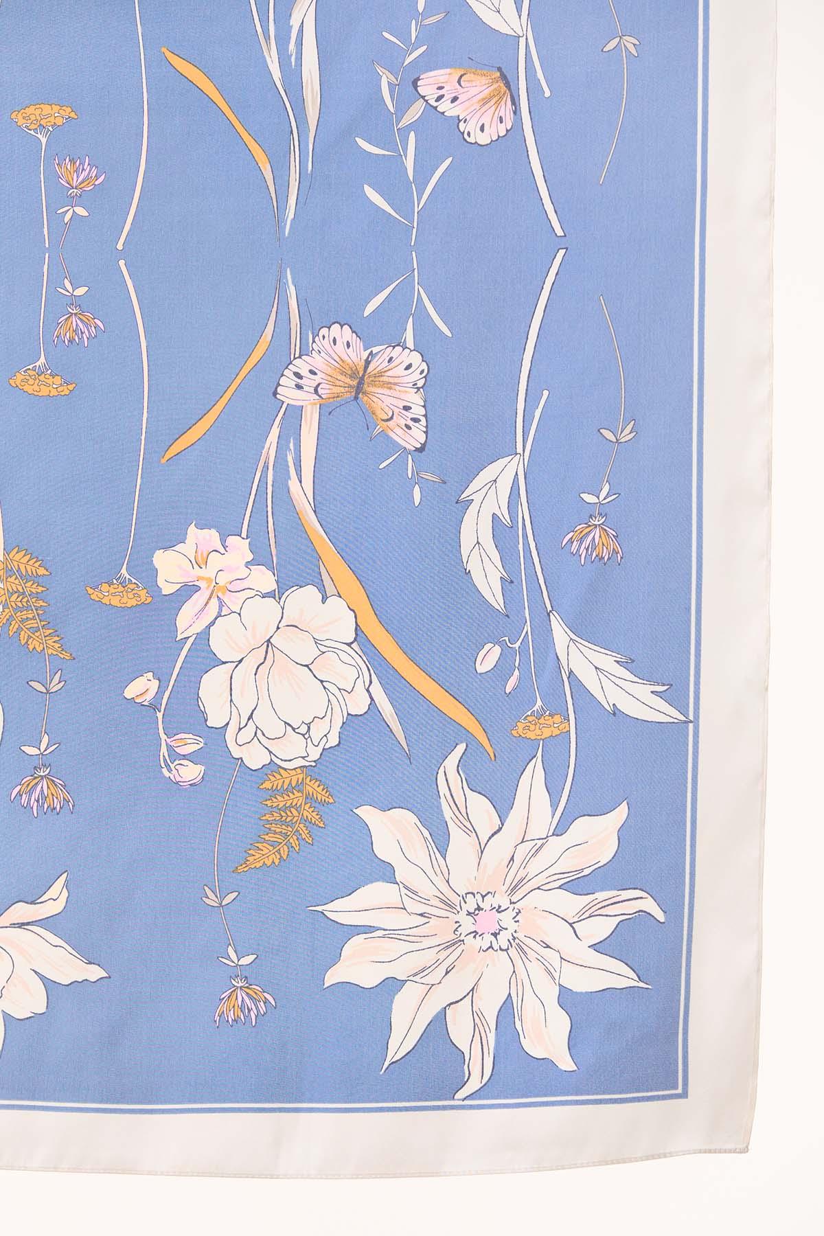 Silky Floral Butterfly Square Scarf