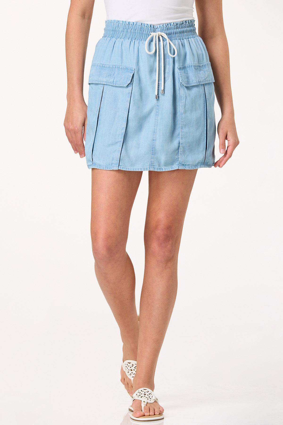 Make it a comfy and cute day with this chambray style, featuring an elastic-drawstring waist, front pocket detail, faded-blue hue, relaxed fit and attached shorts for a casual, no-show finish you can feel confident in.