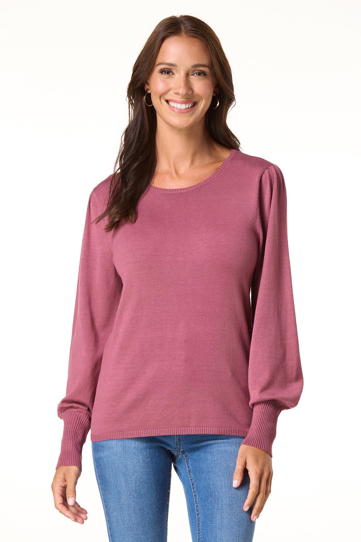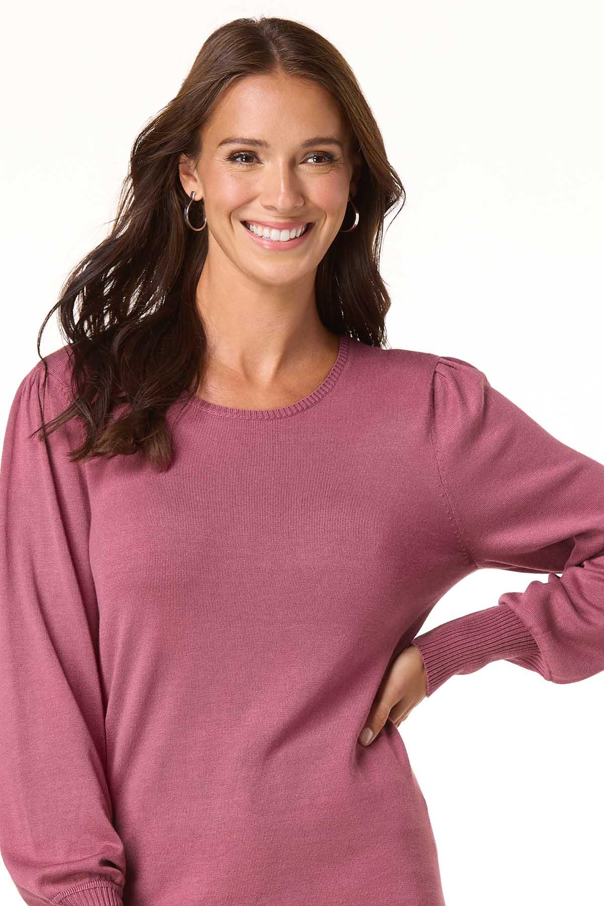 Cozy meets chic in this must-have pullover sweater, featuring balloon sleeves, a classic crewneck, and flattering ribbed trim. Available in a range of colors, it’s the perfect piece to elevate your everyday look. Pair it with high-waisted jeans and ankle boots for casual-cool vibes, or tuck it into a midi skirt for a polished twist.