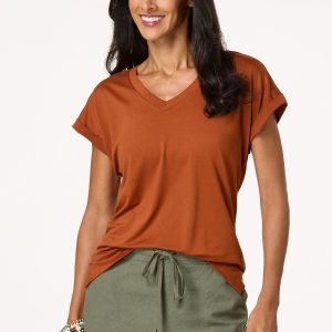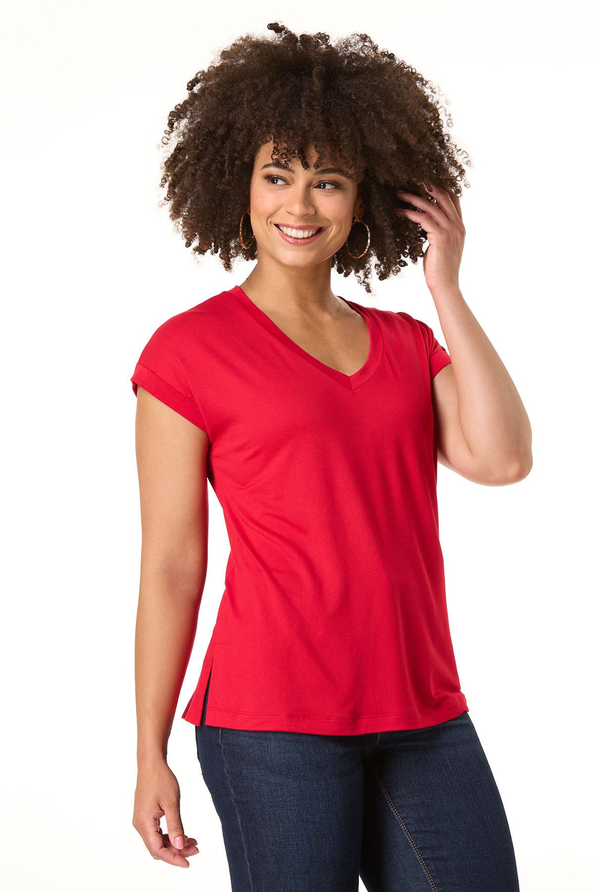 Meet the must-have staple you’ll want to make sure you have. A buttery-soft knit, v-neckline, cuffed sleeves and solid hue are the details that make this basic, basically one you’ll love for jeans, shorts and anything in between.