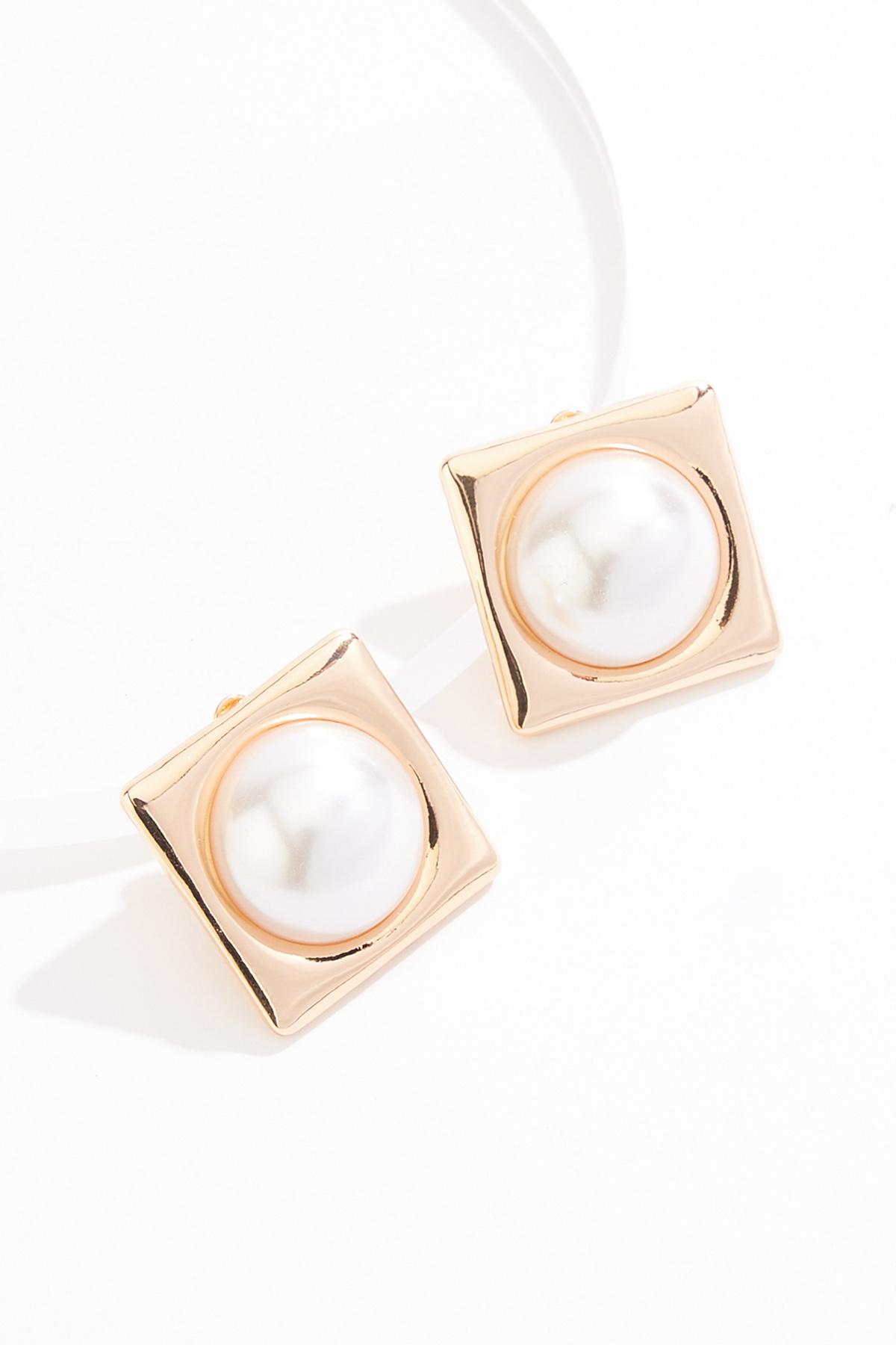Square Oversized Pearl Clip- On Earrings