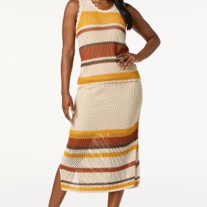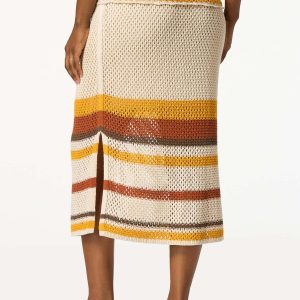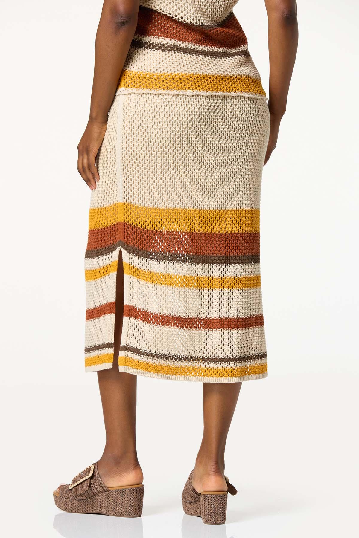 You’ve met your match with this sweet, open stitch sweater skirt, featuring a pull-on waist, side slit hem and a stripe design topping a natural color palette. Wear with a solid beige or white tank or pair with our matching stripe scalloped open stitch tank for a look that’s so meant to be.