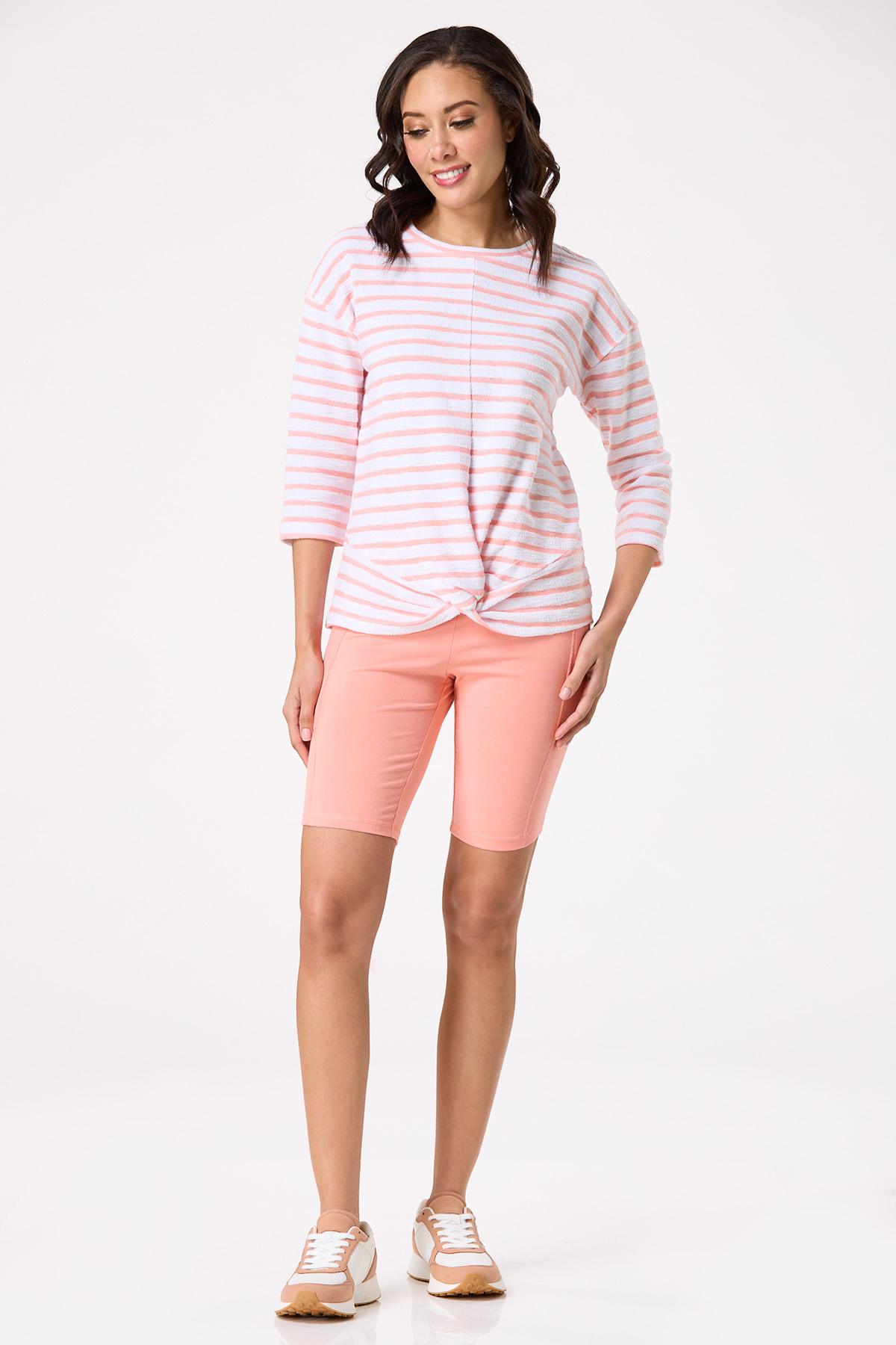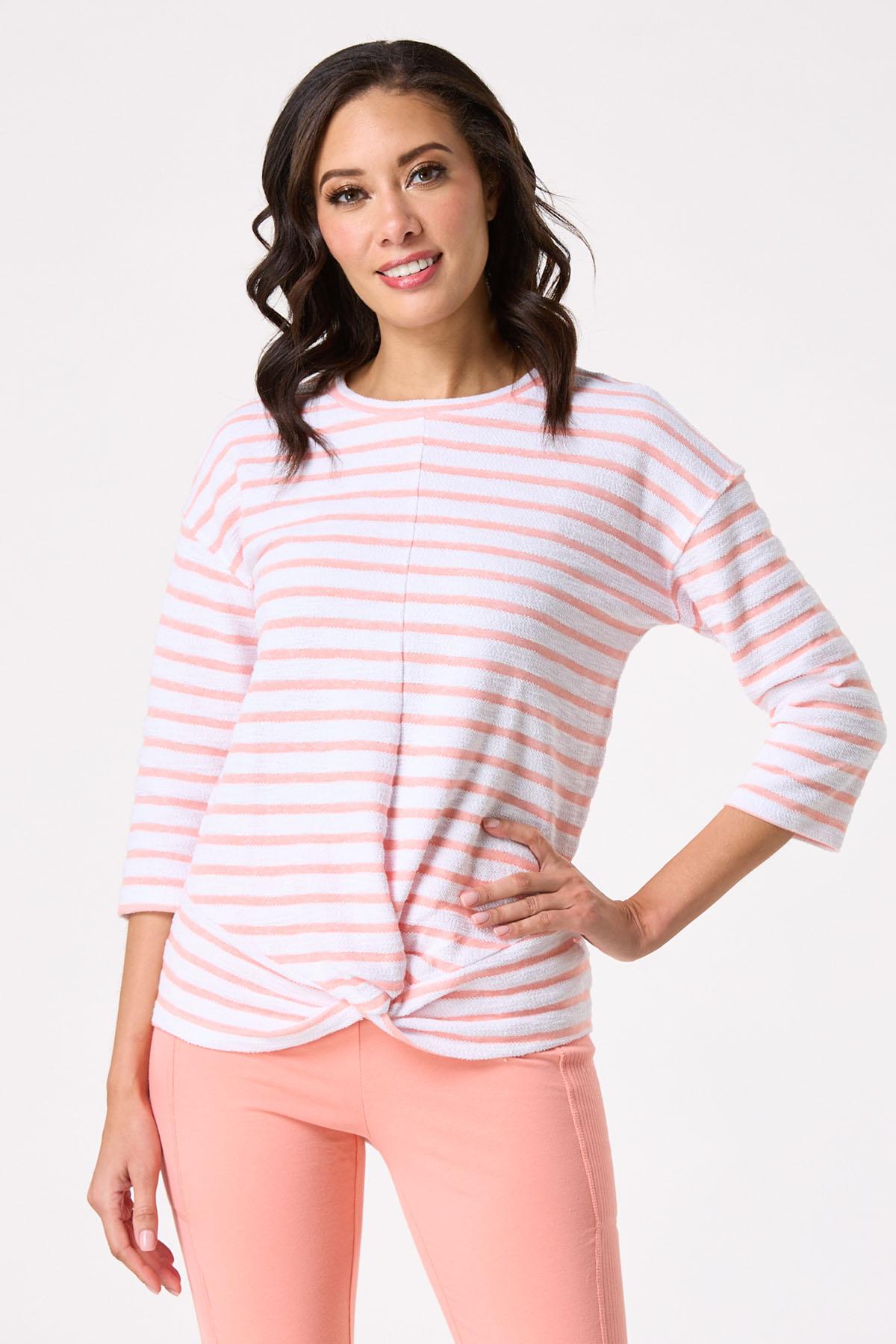 Stripe Twisted Hem French Terry Top