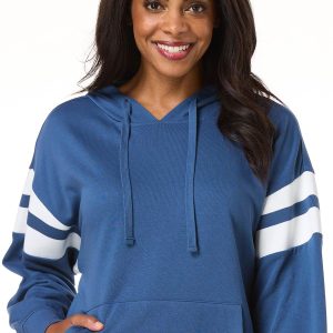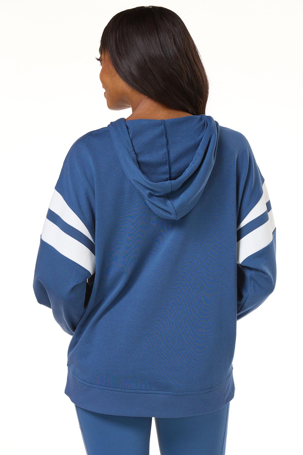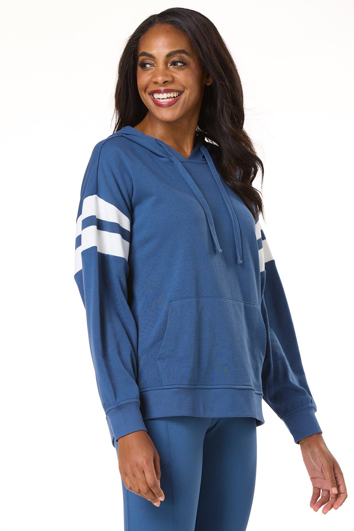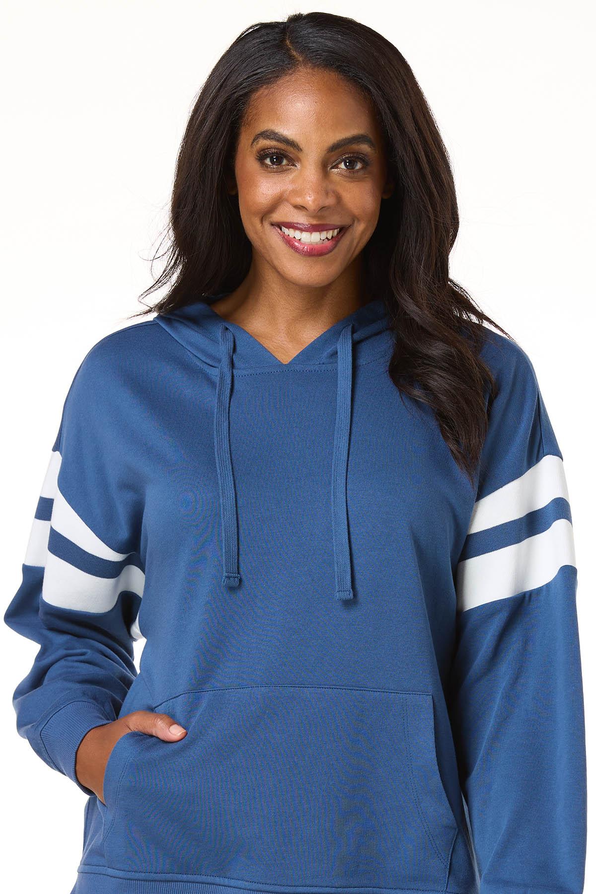 Take laid back days to a cozier level with this pullover style, featuring a drawstring hood, sporty-striped sleeves, kangaroo front pockets and a relaxed fit for a weekend-ready look you can get used to time and time again.