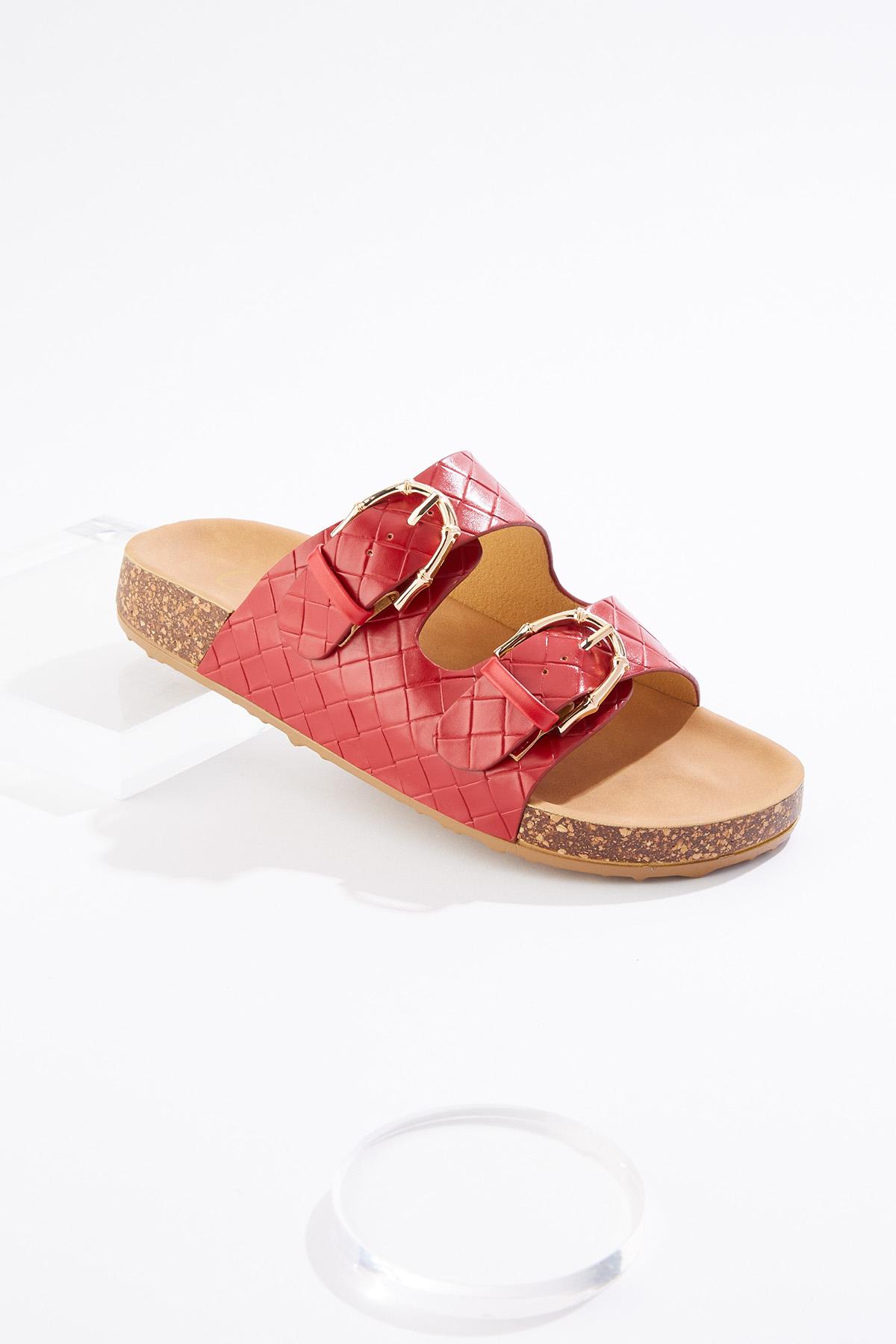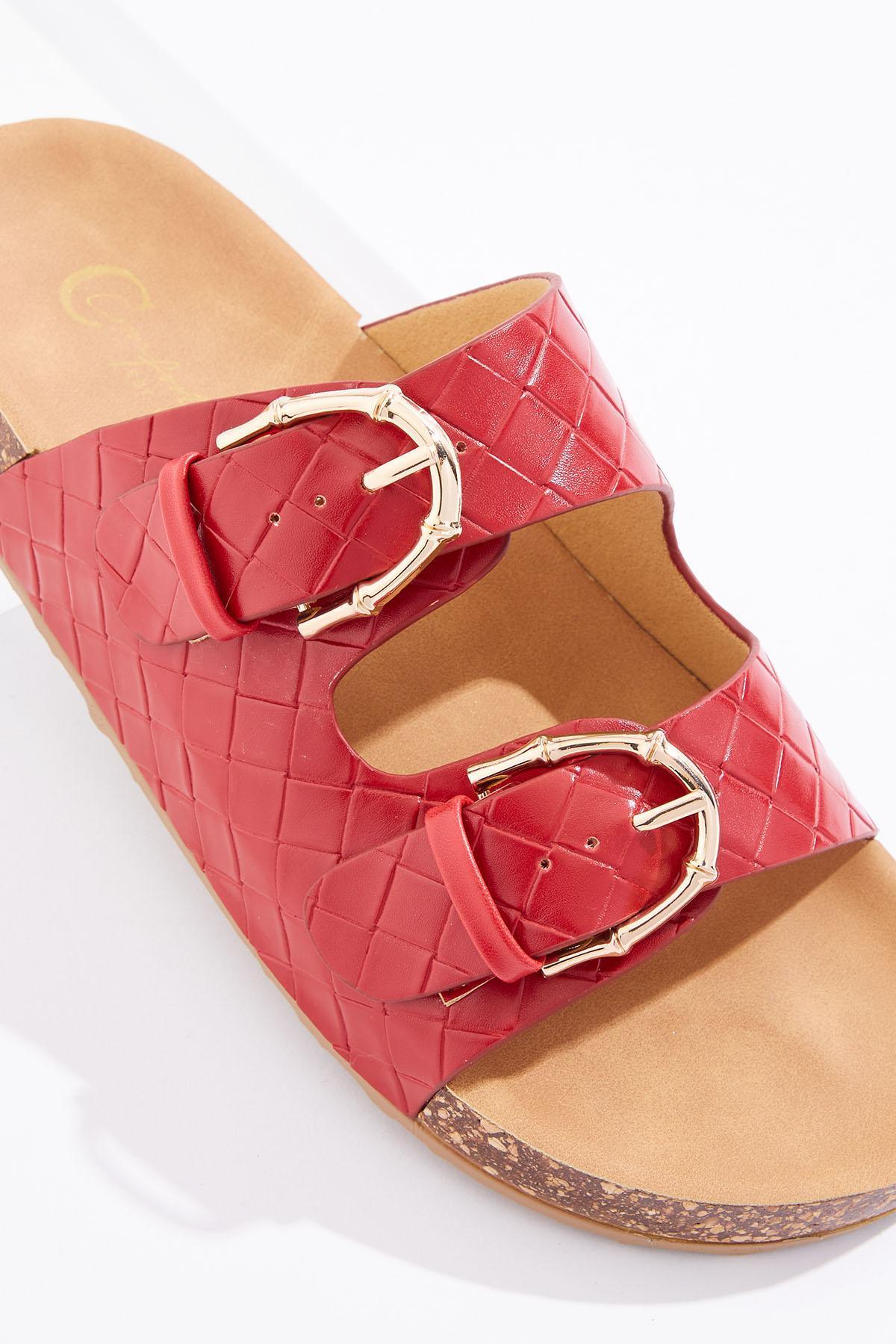Textured Double Buckle Sandals