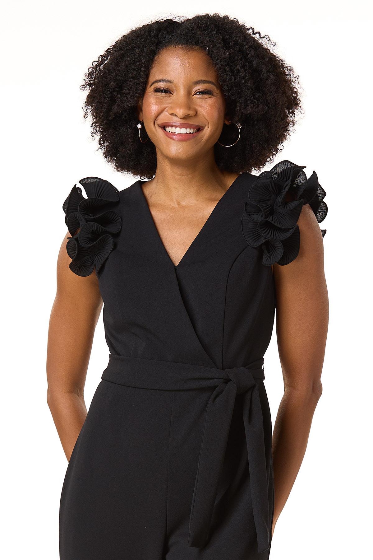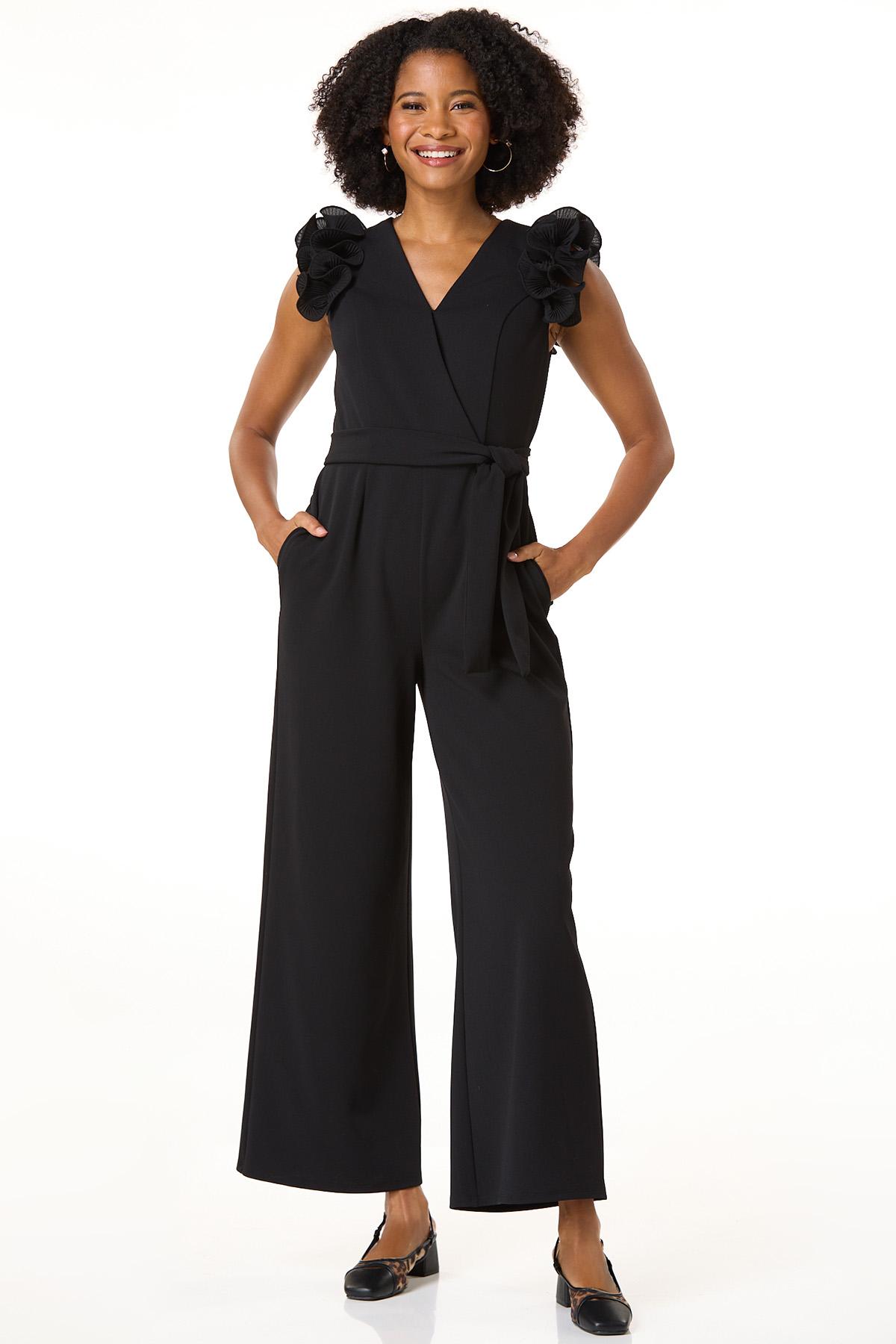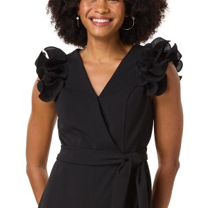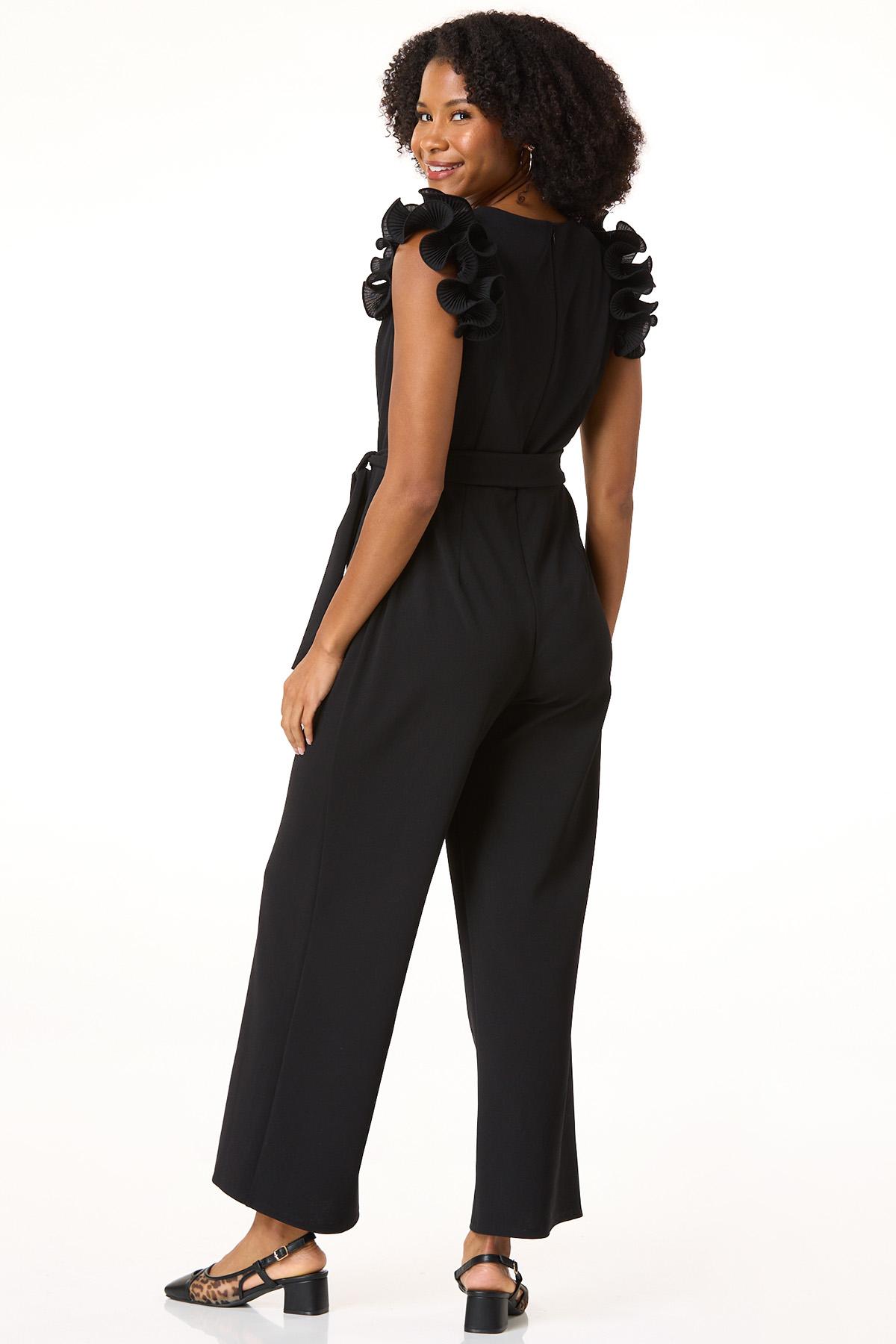 Textured Ruffle Sleeve Jumpsuit