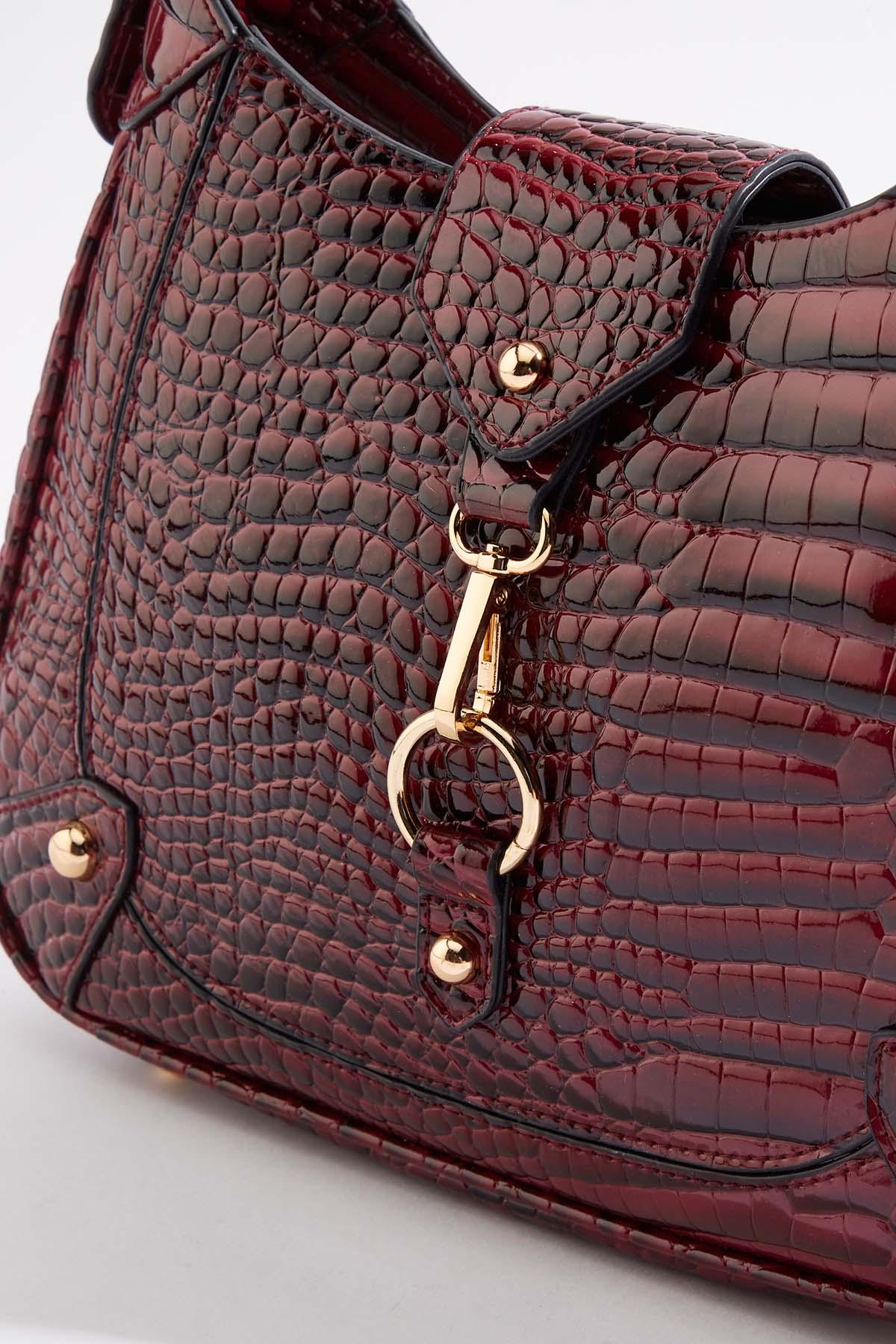 Textured Shiny Shoulder Handbag