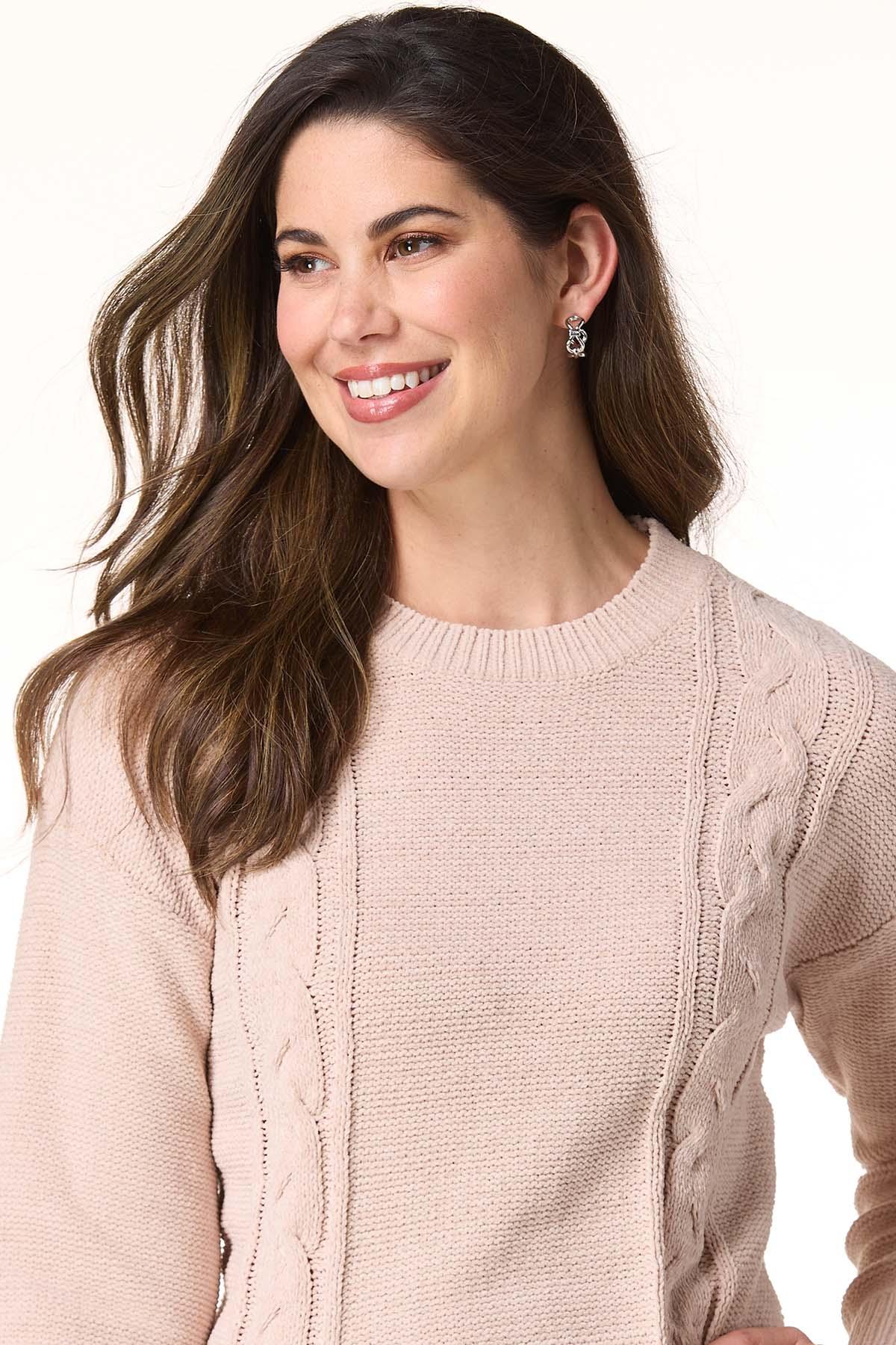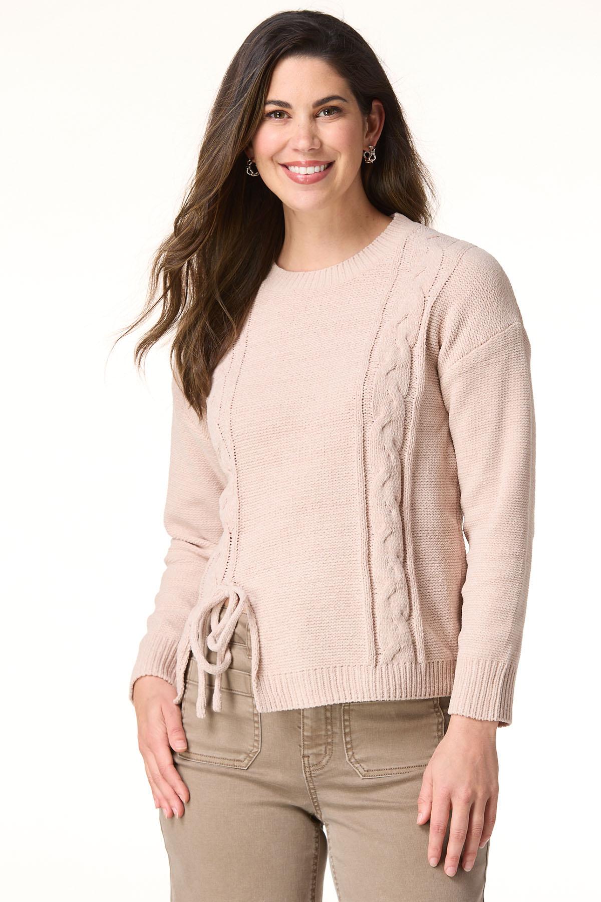 Cozy up to the season with this must-have favorite. Starting with the classic, scoop neckline and continuing with a so-soft feel, cable knit design and cute tie-bow hem, this sweater is here for the chill and the cuteness.