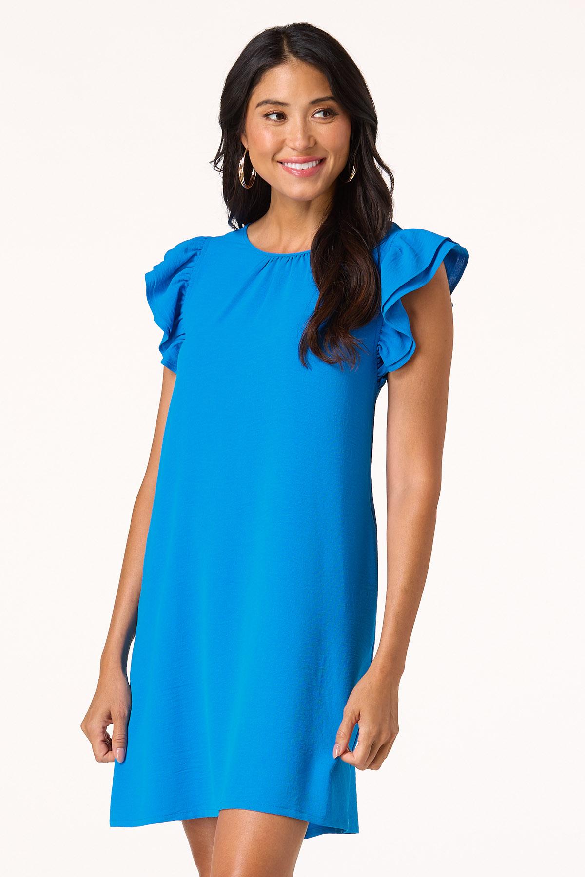 Show up looking sweet and complementing those sunny, blue skies with this darling dress, featuring double-ruffled sleeves, a relaxed fit, wrinkle-free fabric and a shade of blue for a memorable finish.