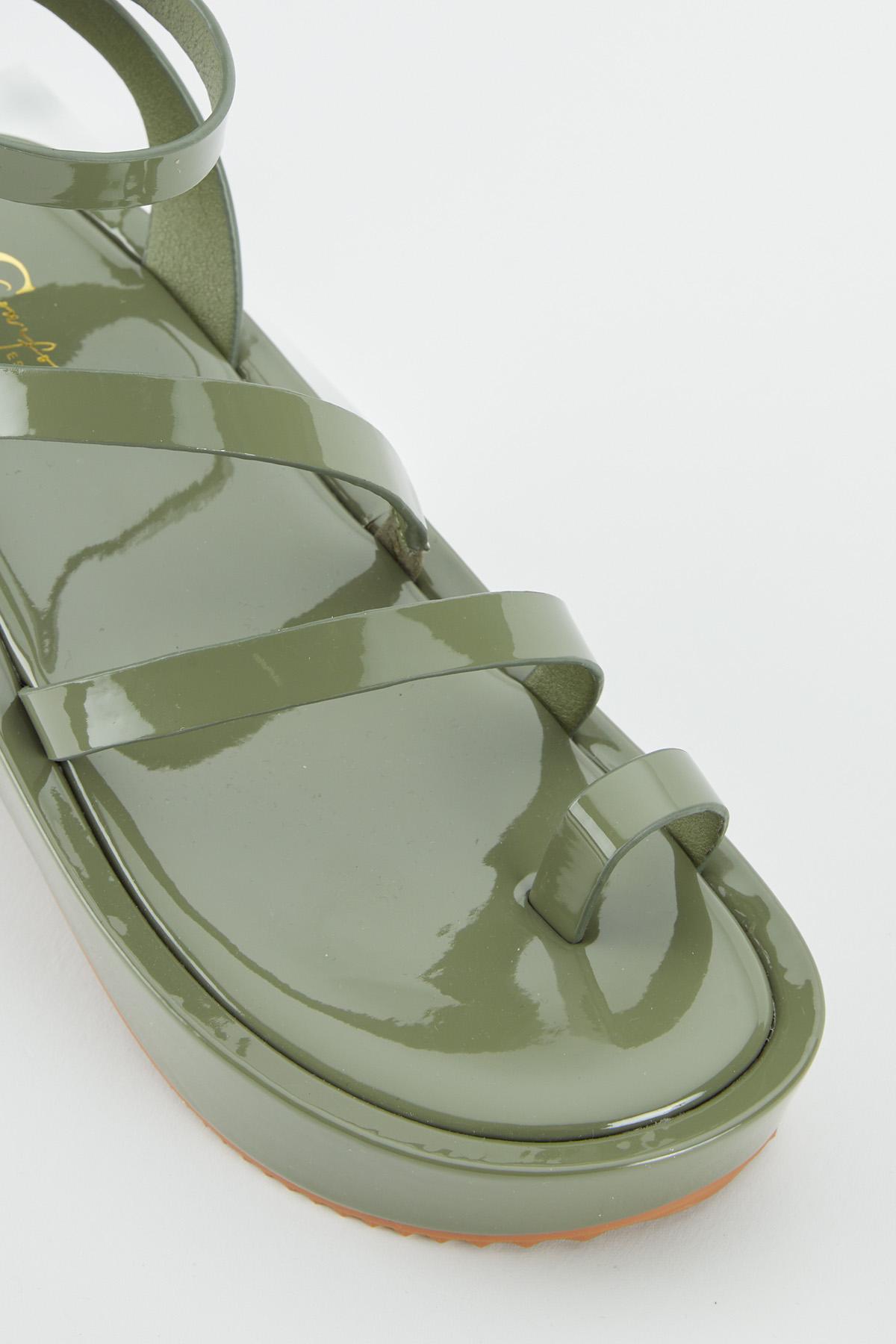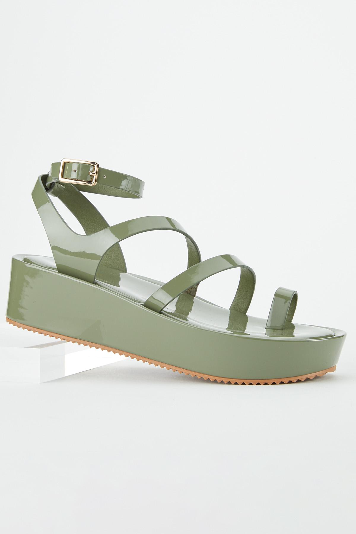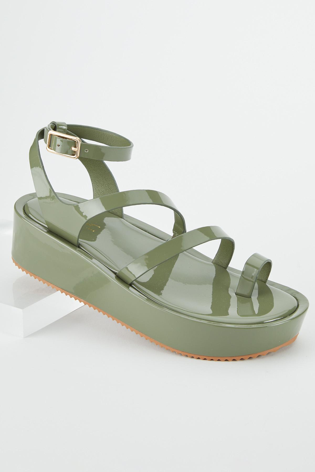 Toe Loop Patent Wedge Sandals