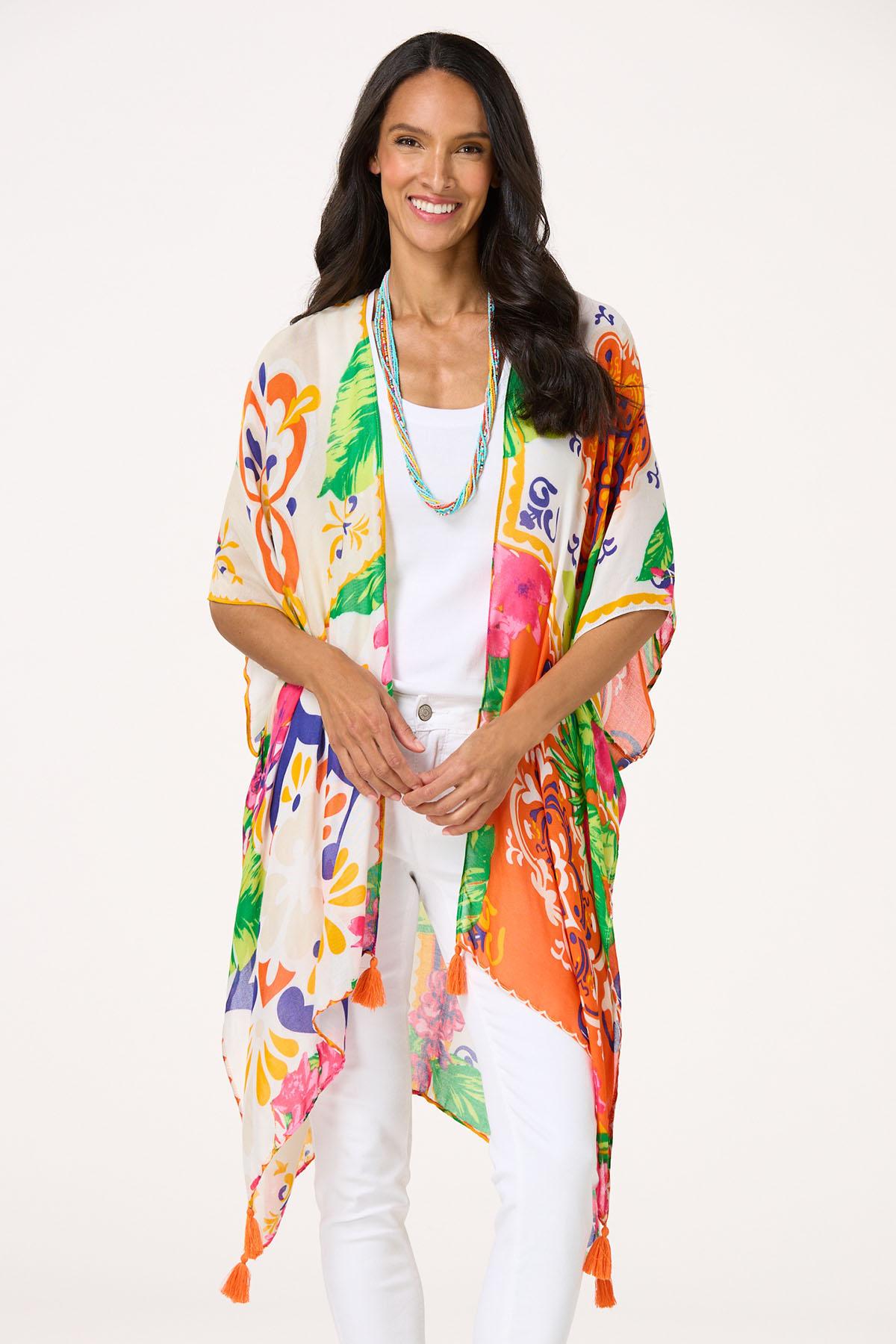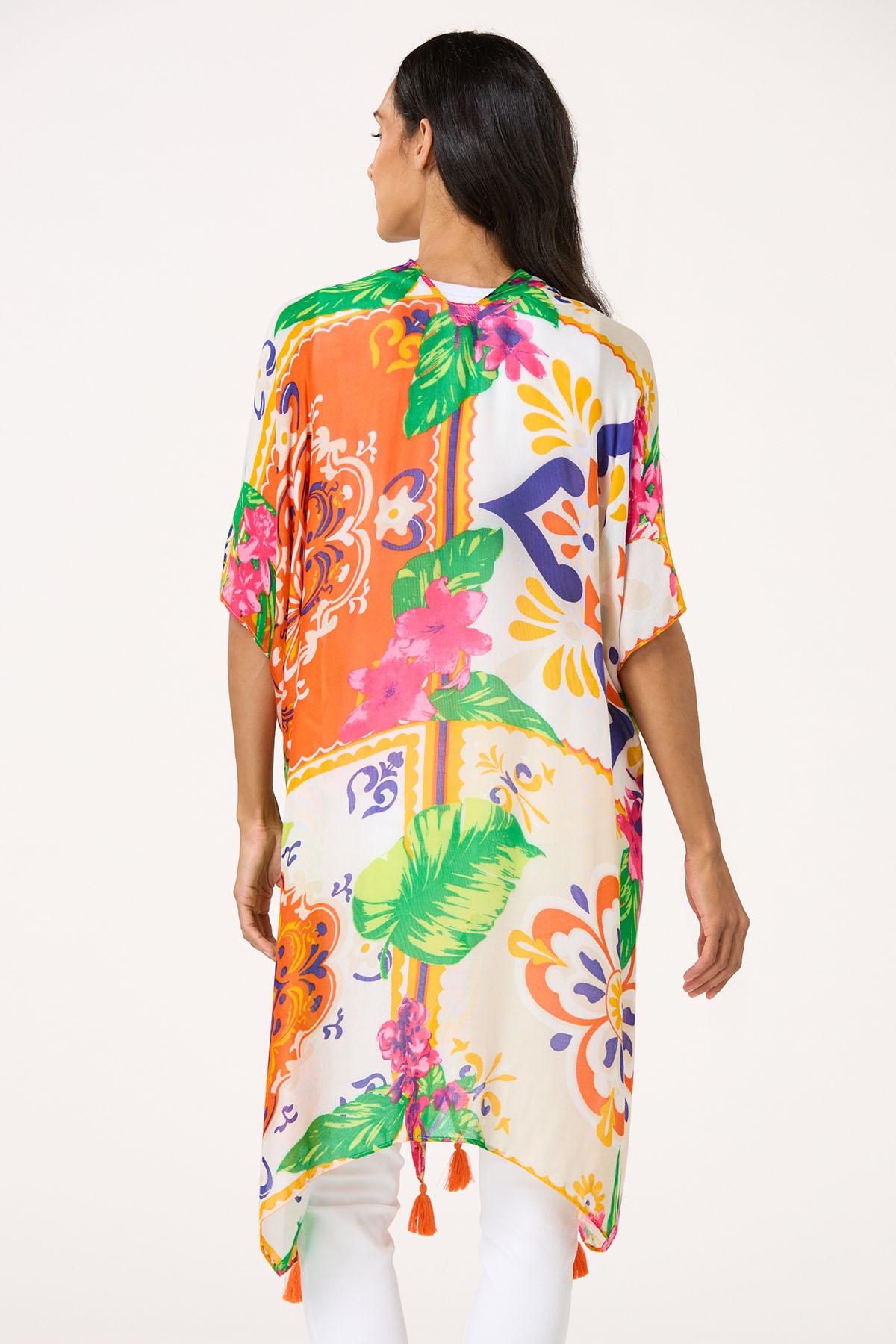 Vibrant Floral Tasseled Kimono
