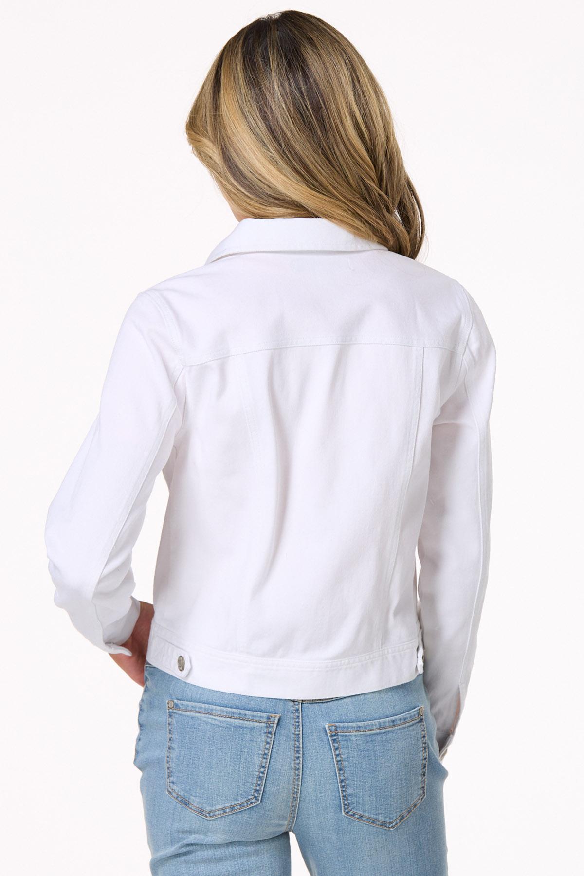 It’s the staple you’ll find yourself reaching for time and time again. In a bright-white hue, this denim jacket is ready to top off all those tees, tanks and sleeveless dresses with its flattering-stretch fit, button down front and double-pocket detail.