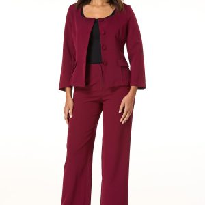 Make a bold fall statement in these woven wide-leg pants in a rich rhubarb red. The lightweight silhouette pairs perfectly with the matching ruched-waist blazer, or keep it casual with a tucked-in tee. Tailored and endlessly versatile.