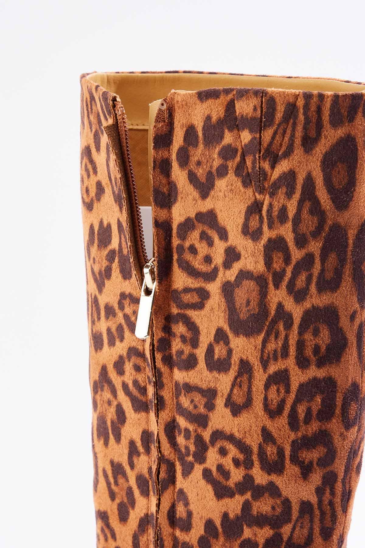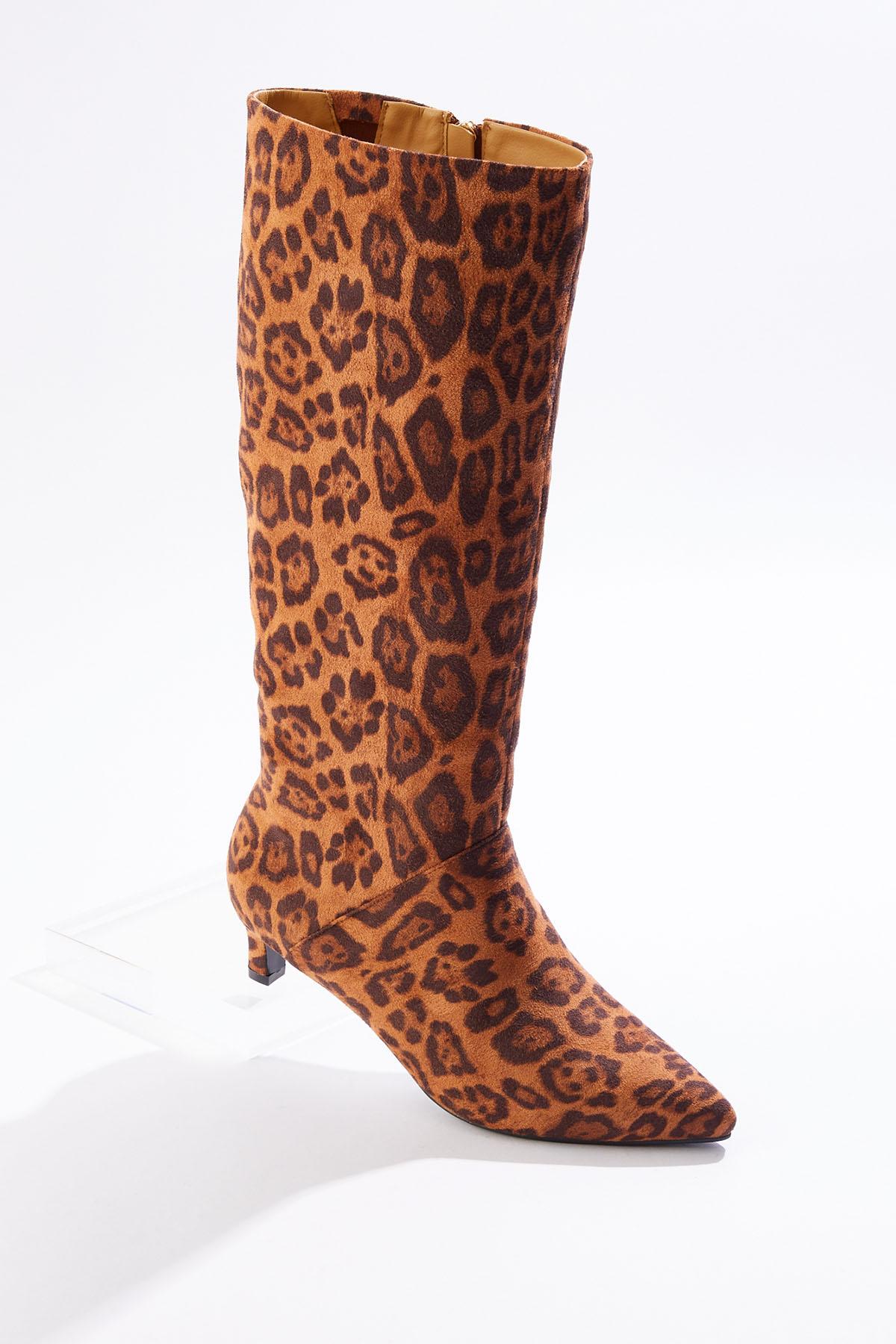 Wide Width Faux Suede Leopard Tall Boots