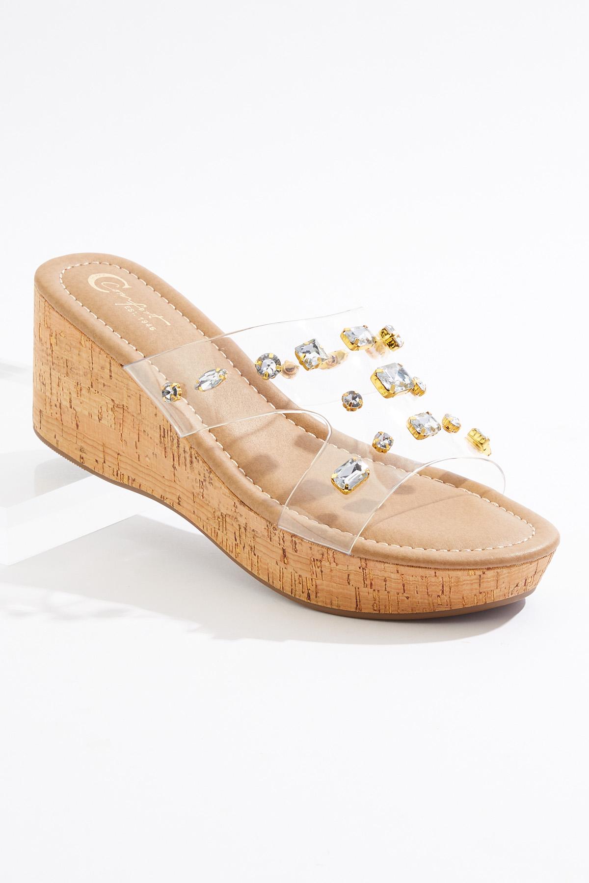 Wide Width Jewel Lucite Cork Wedges