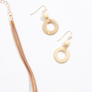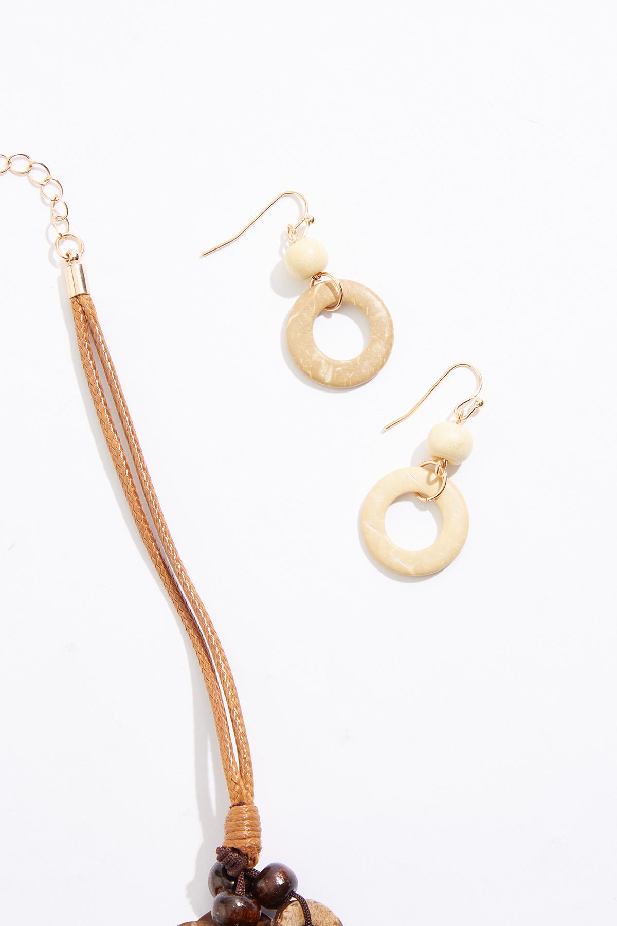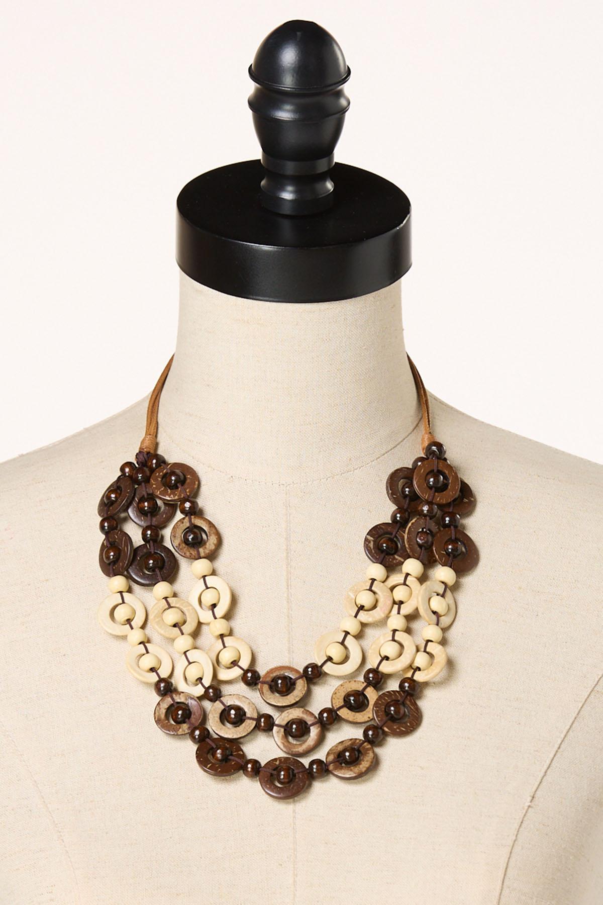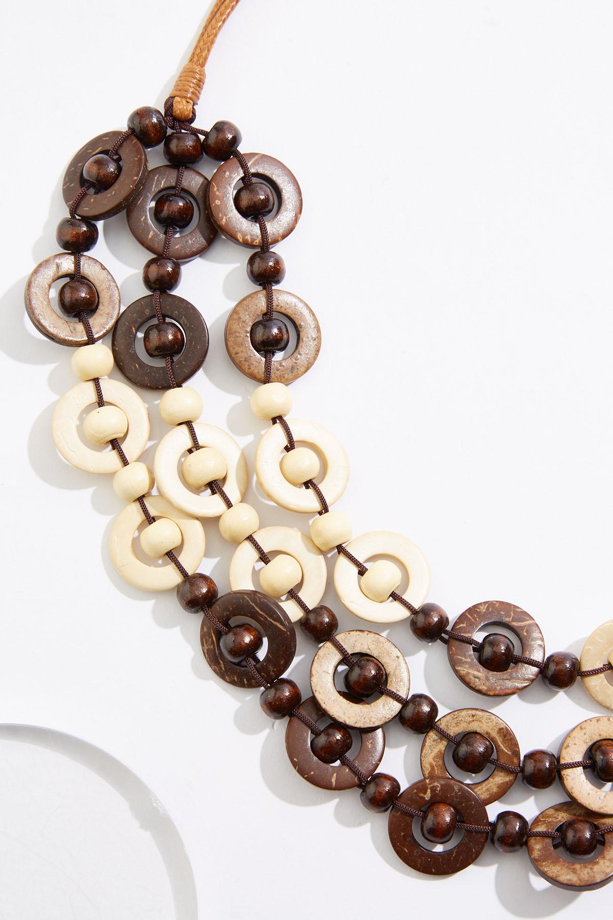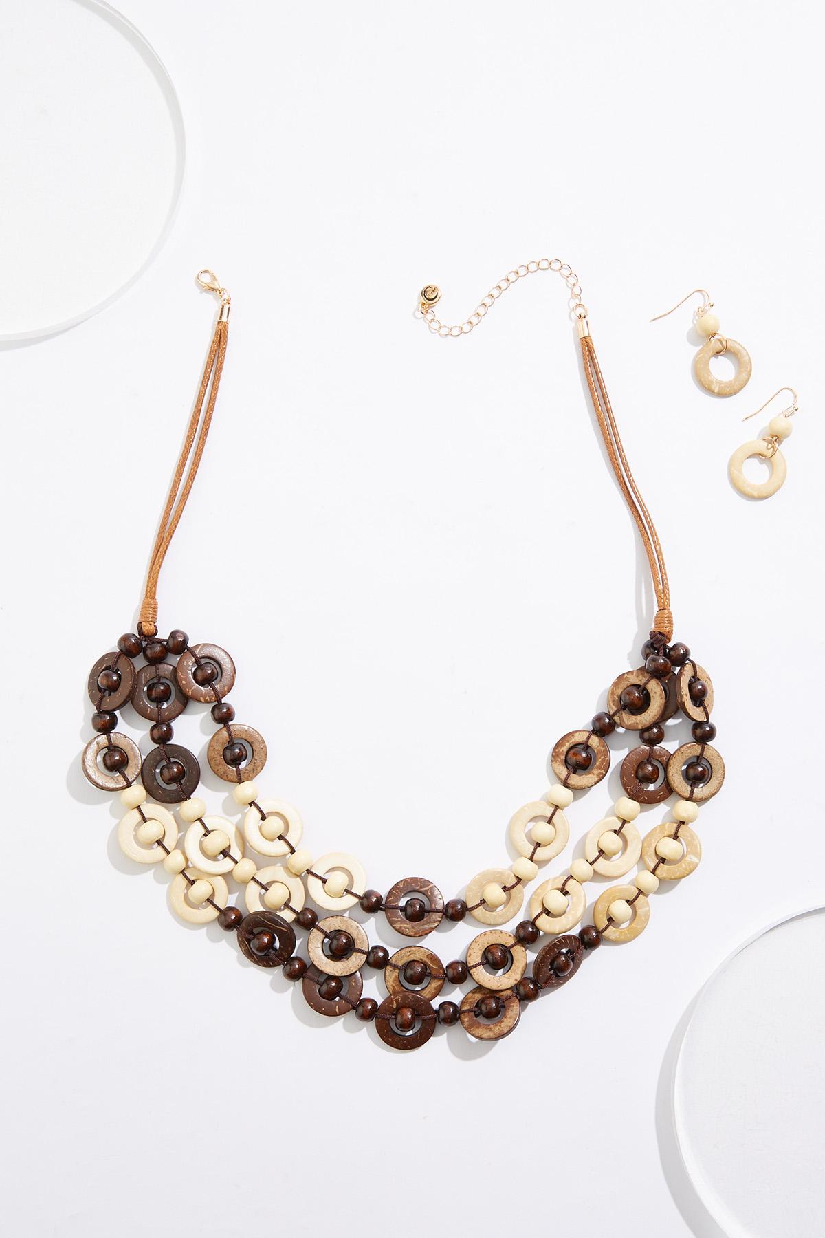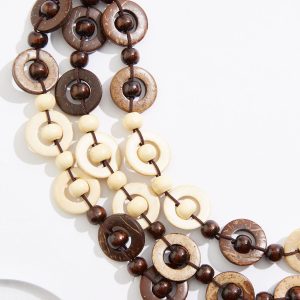 Wood Circles Layered Necklace Set