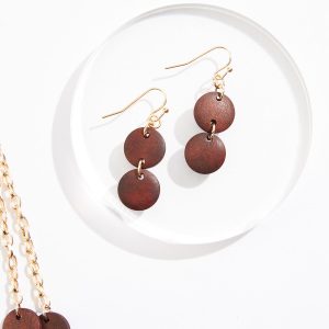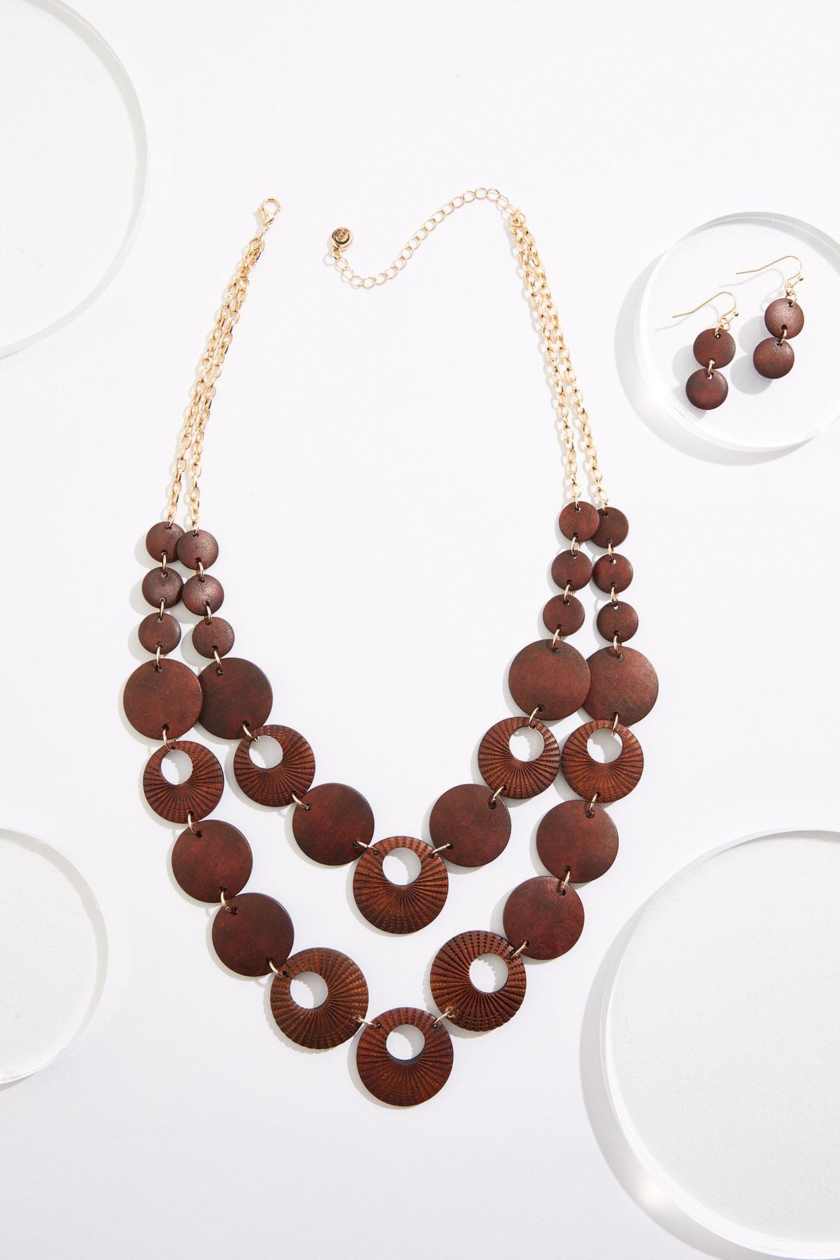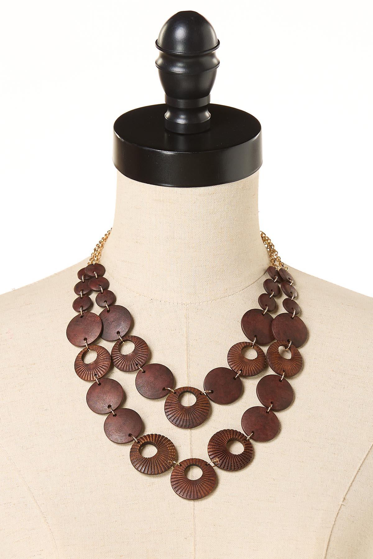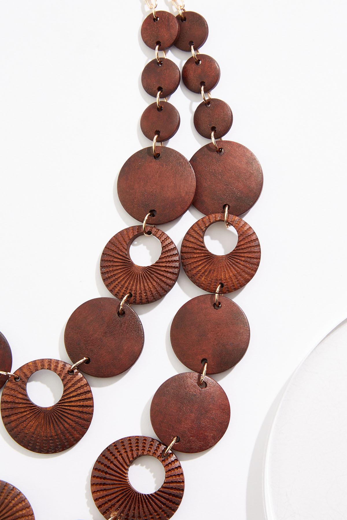 Wood Etched Pattern Necklace Set