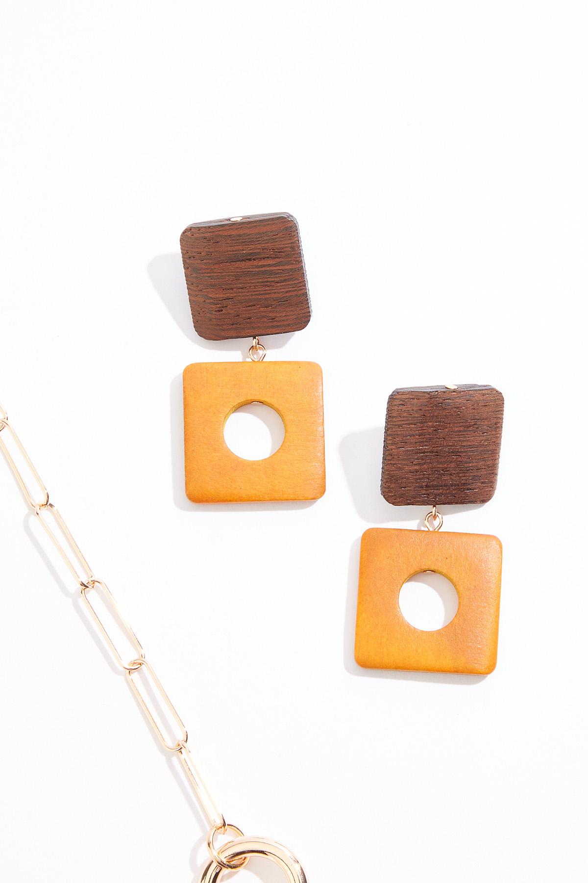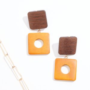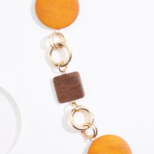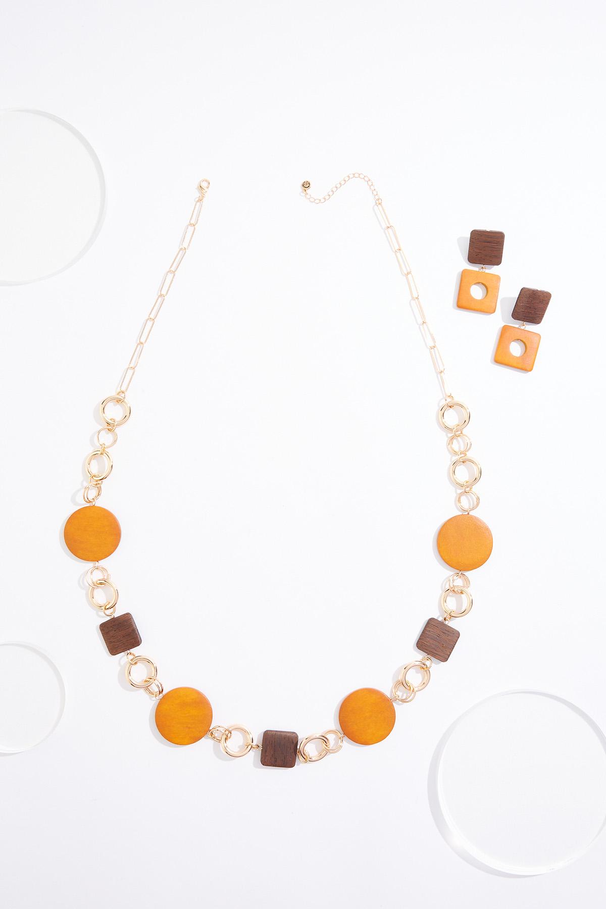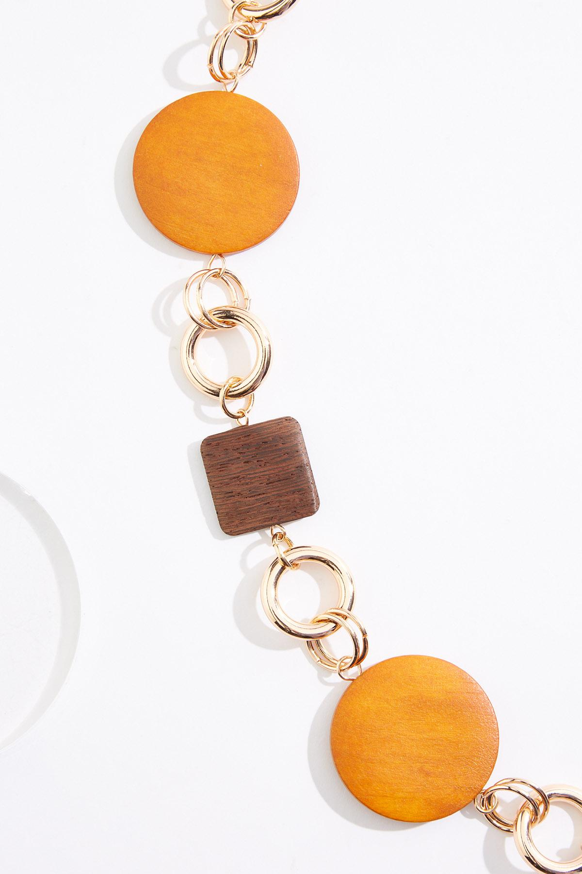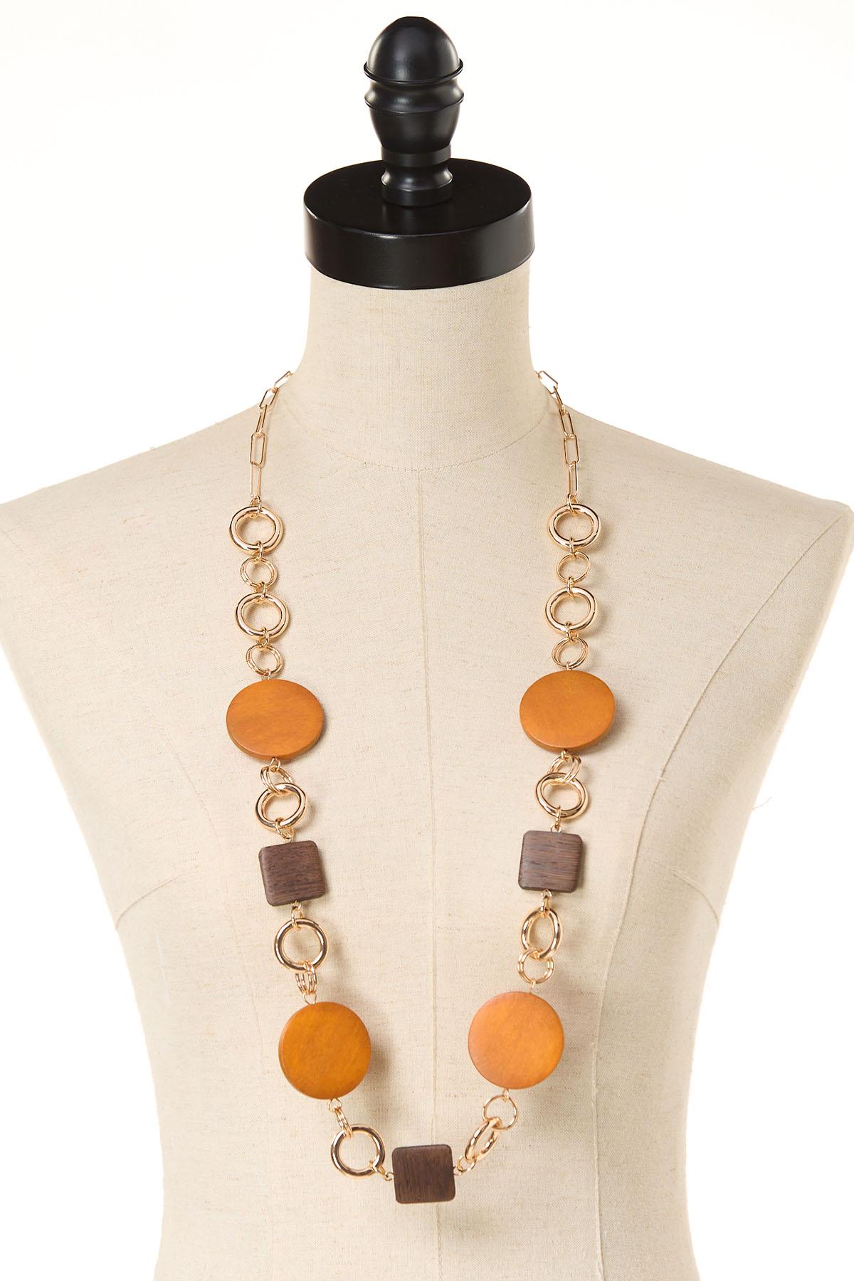 Wood Metal Link Long Necklace Set