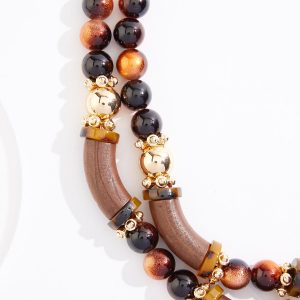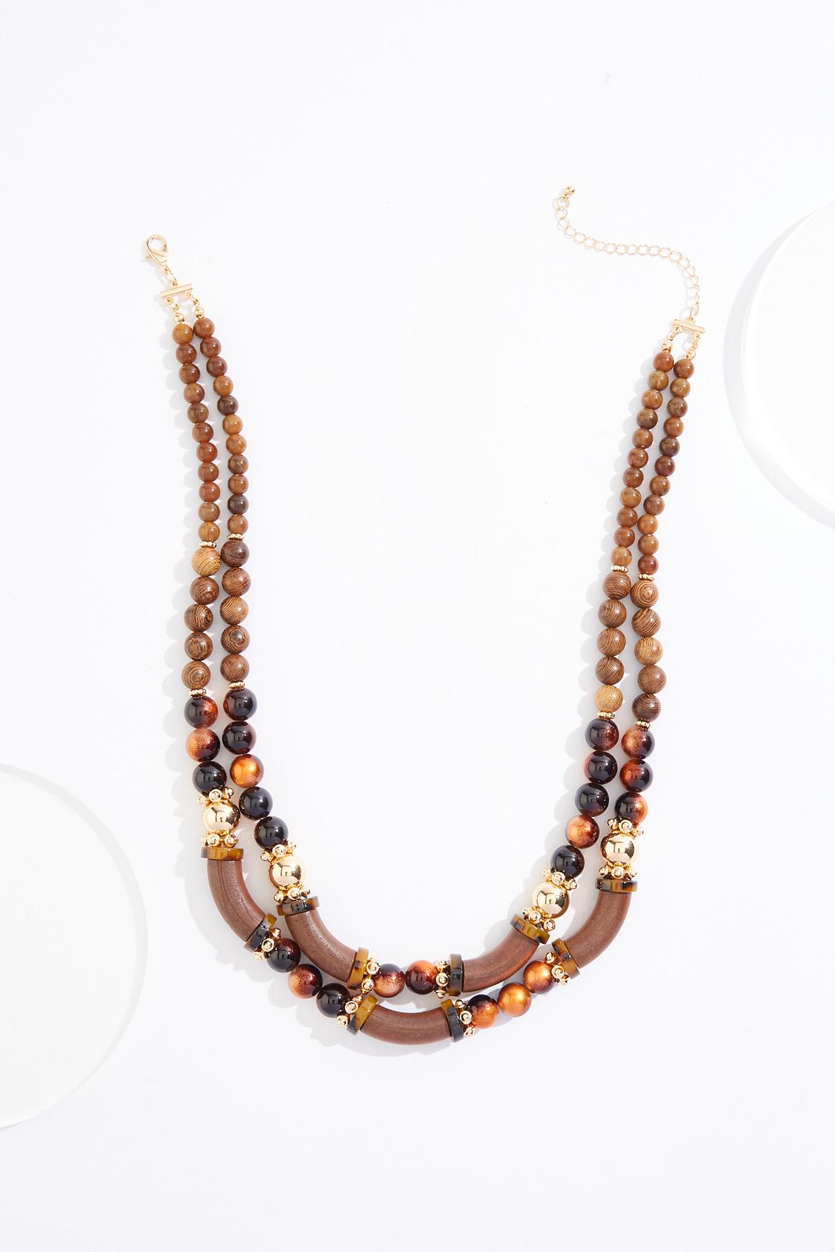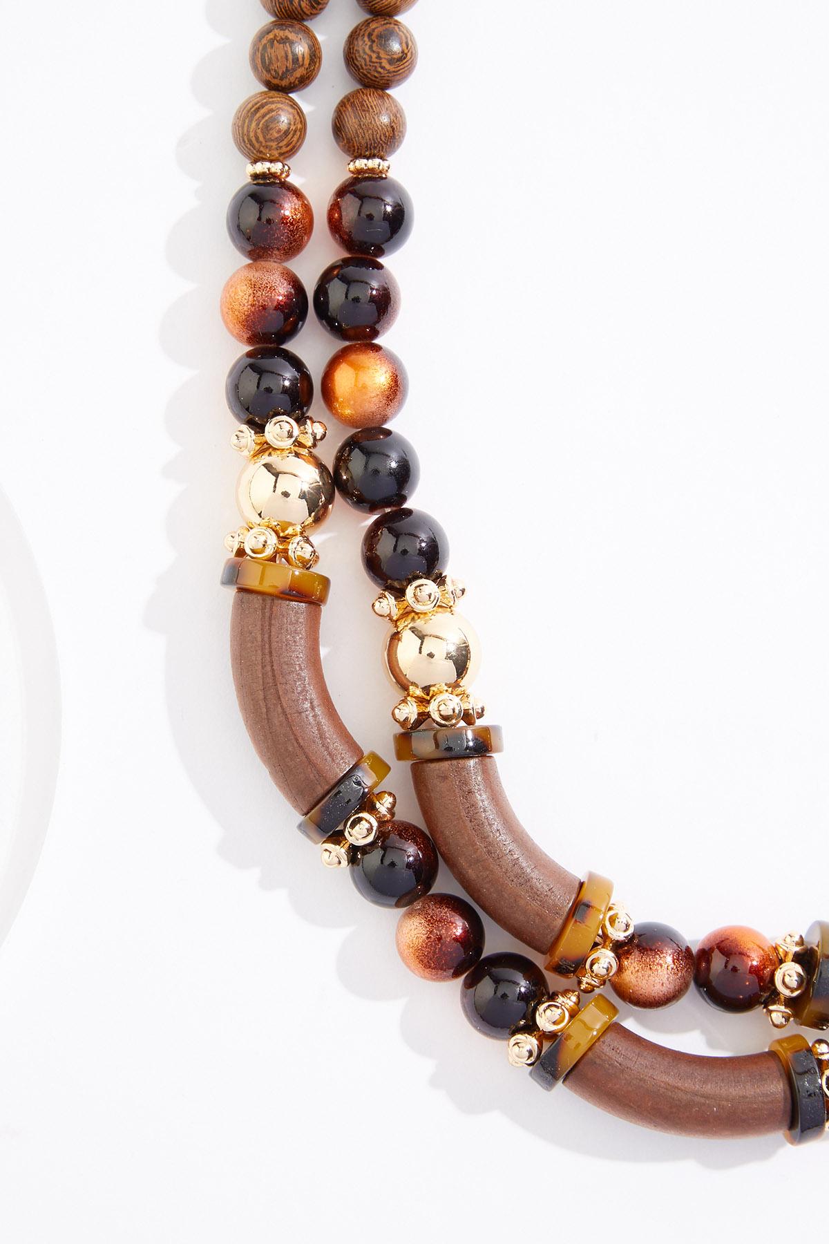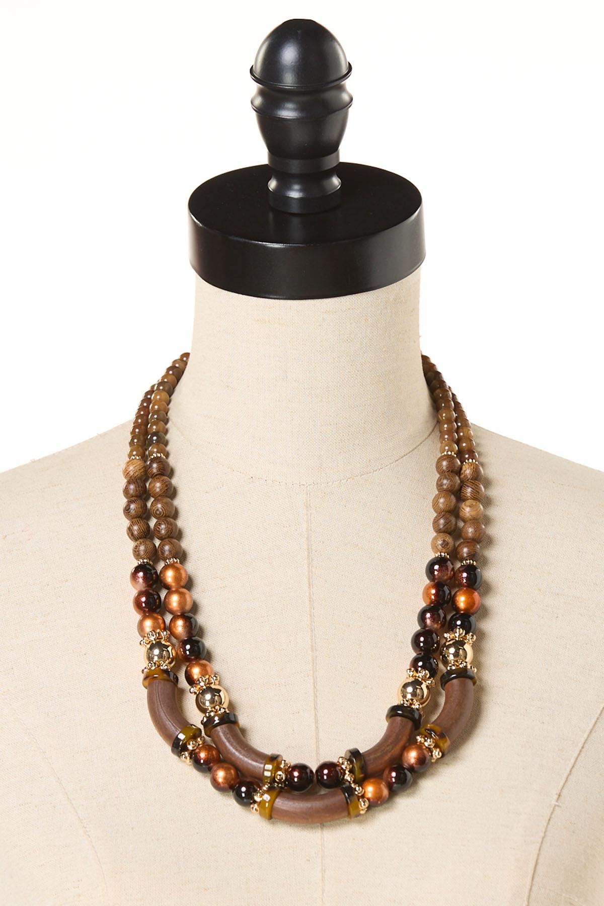 Wood Mixed Lucite Short Layered Necklace