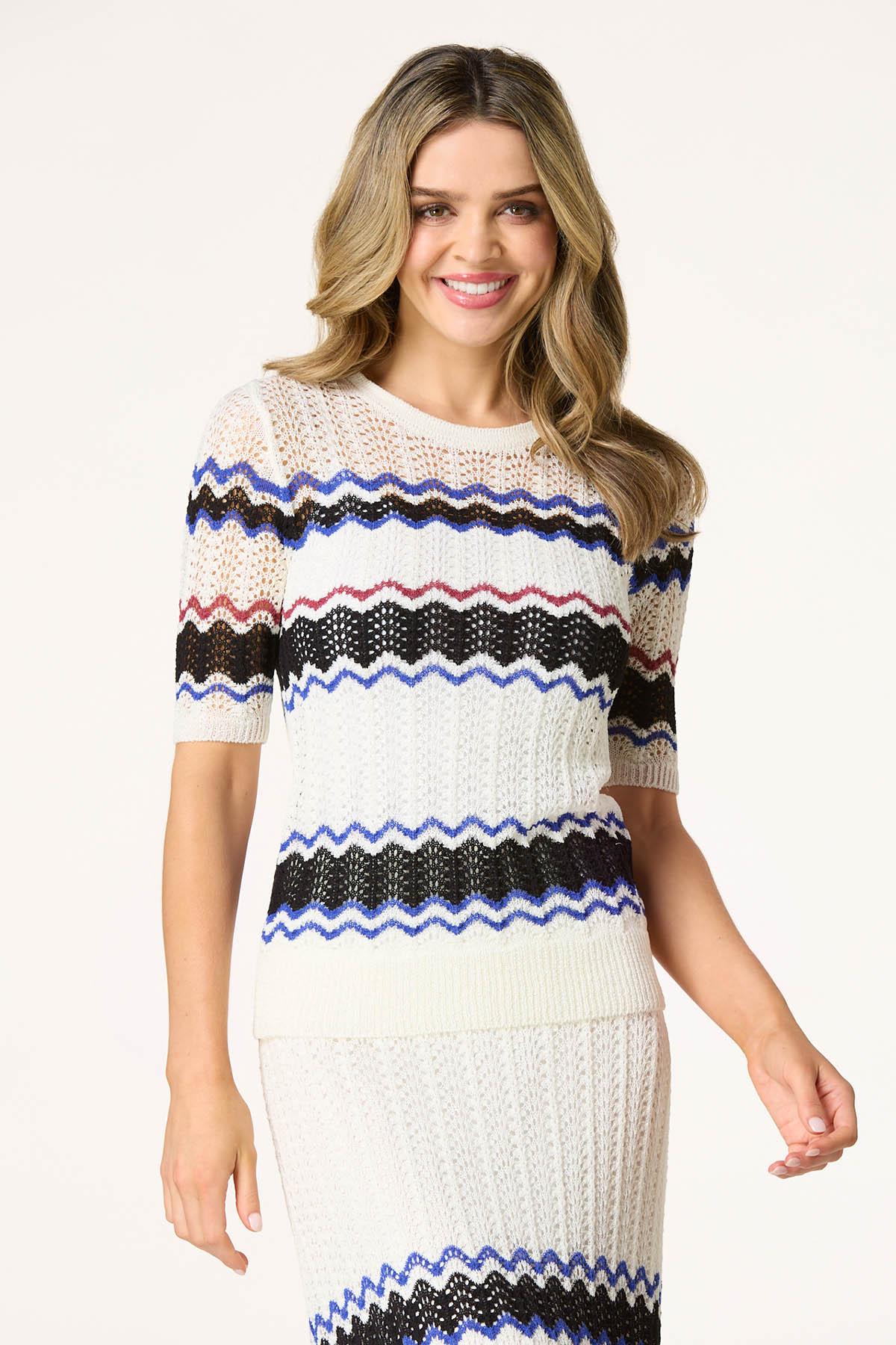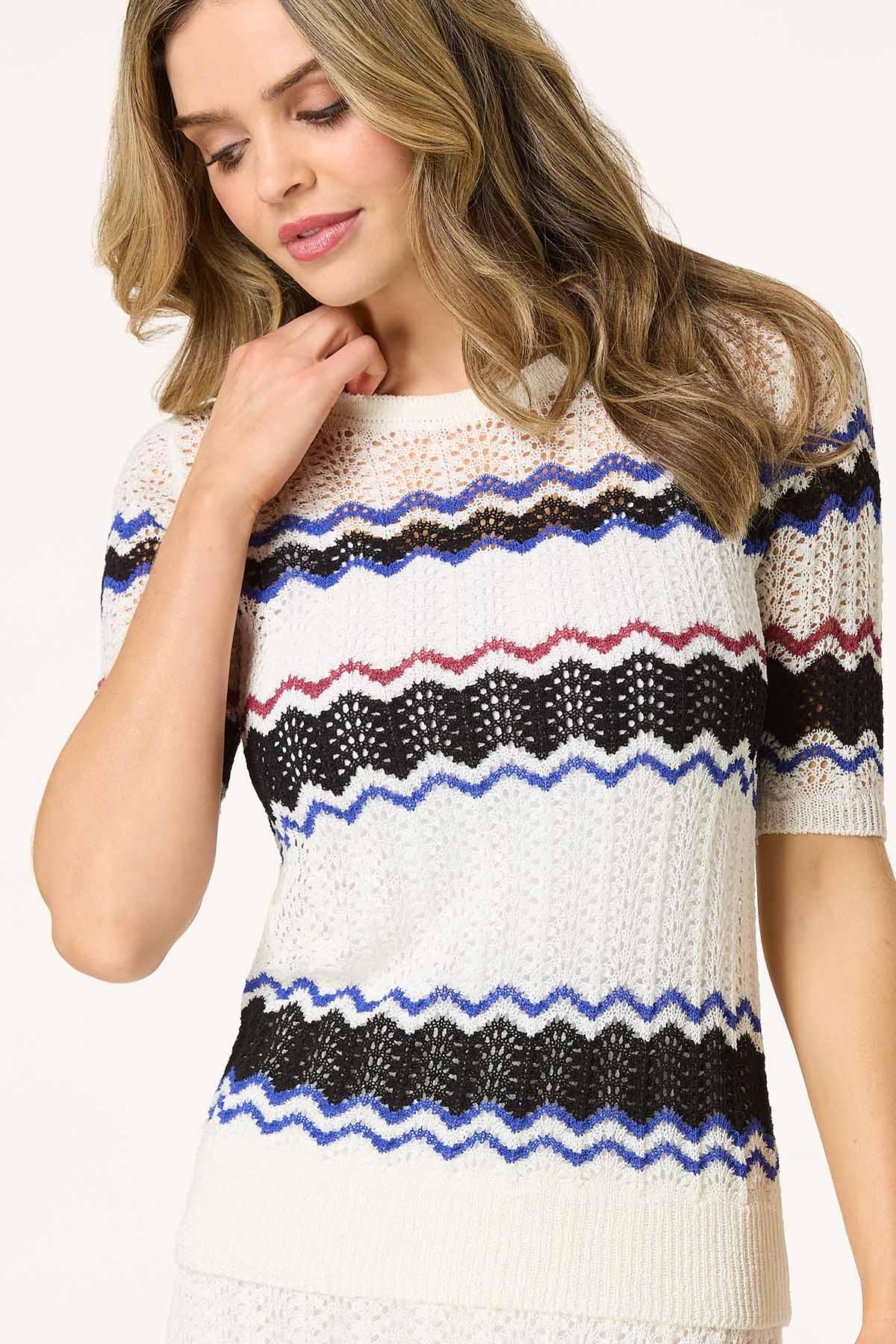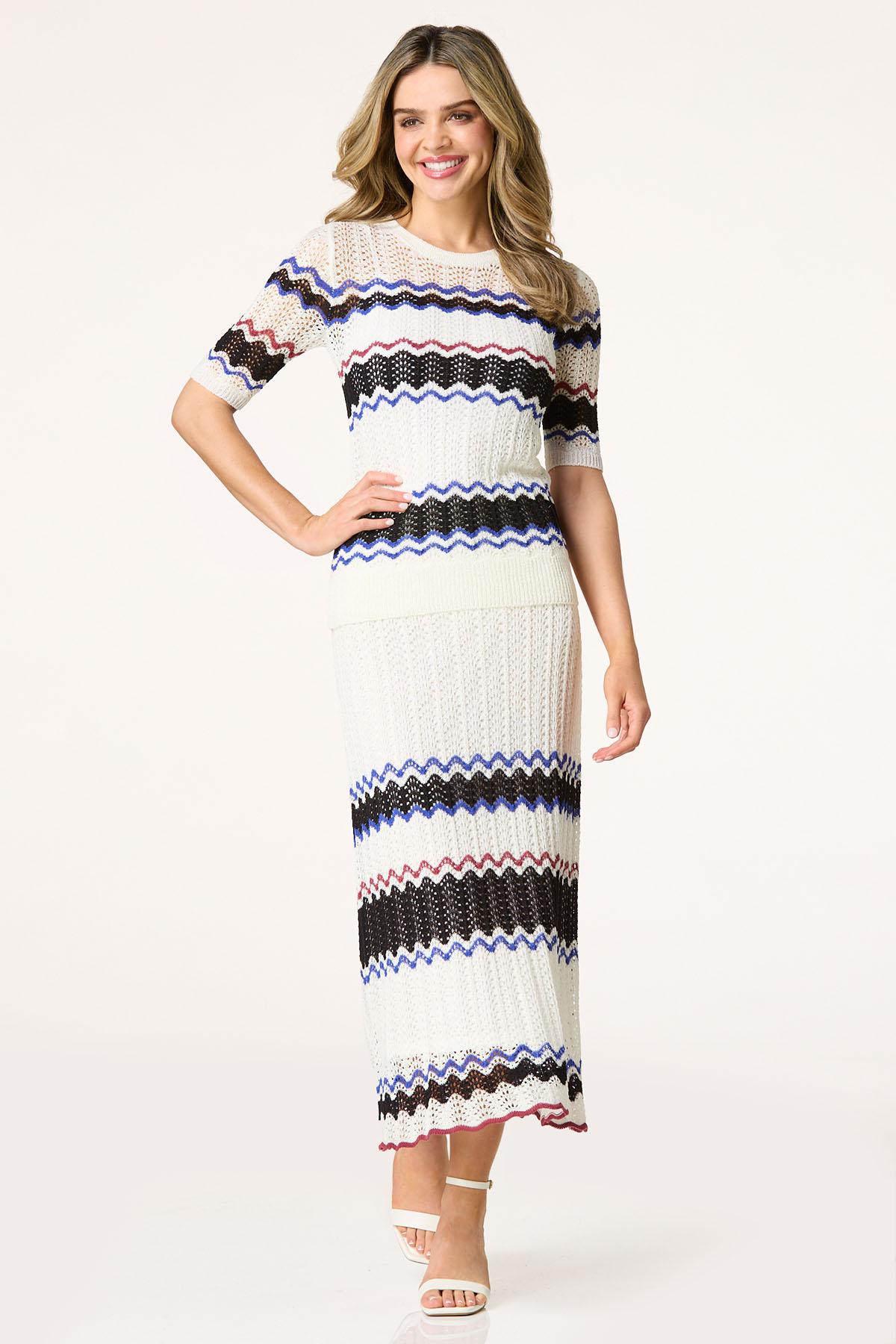 Our zig zag crochet midi skirt has met its match with this pullover sweater, featuring a scoop neckline, relaxed fit and allover crochet design in a chic, zig zag pattern. Wear with your favorite denim or our matching skirt for versatile style options and endless compliments.